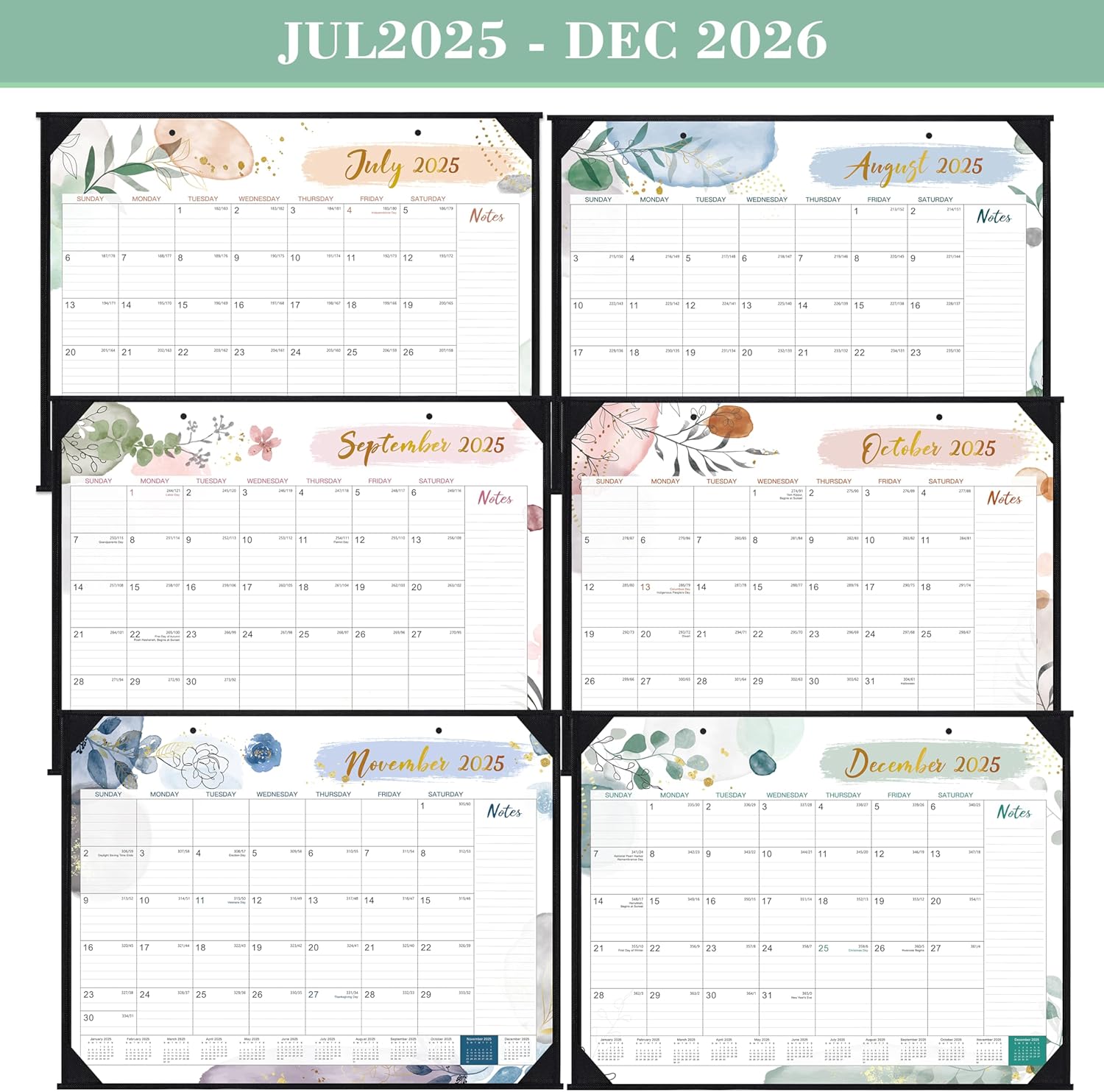 - Professional Content Design - Marked Holidays + Highlighted Federal Holidays + Ruled daily blocks ( 2.32"×2.52") + 2 months reference + Julian date + Two Hanging Holes + Perforated Pages + Two Corner Protectors + Premium Paper + Note Section