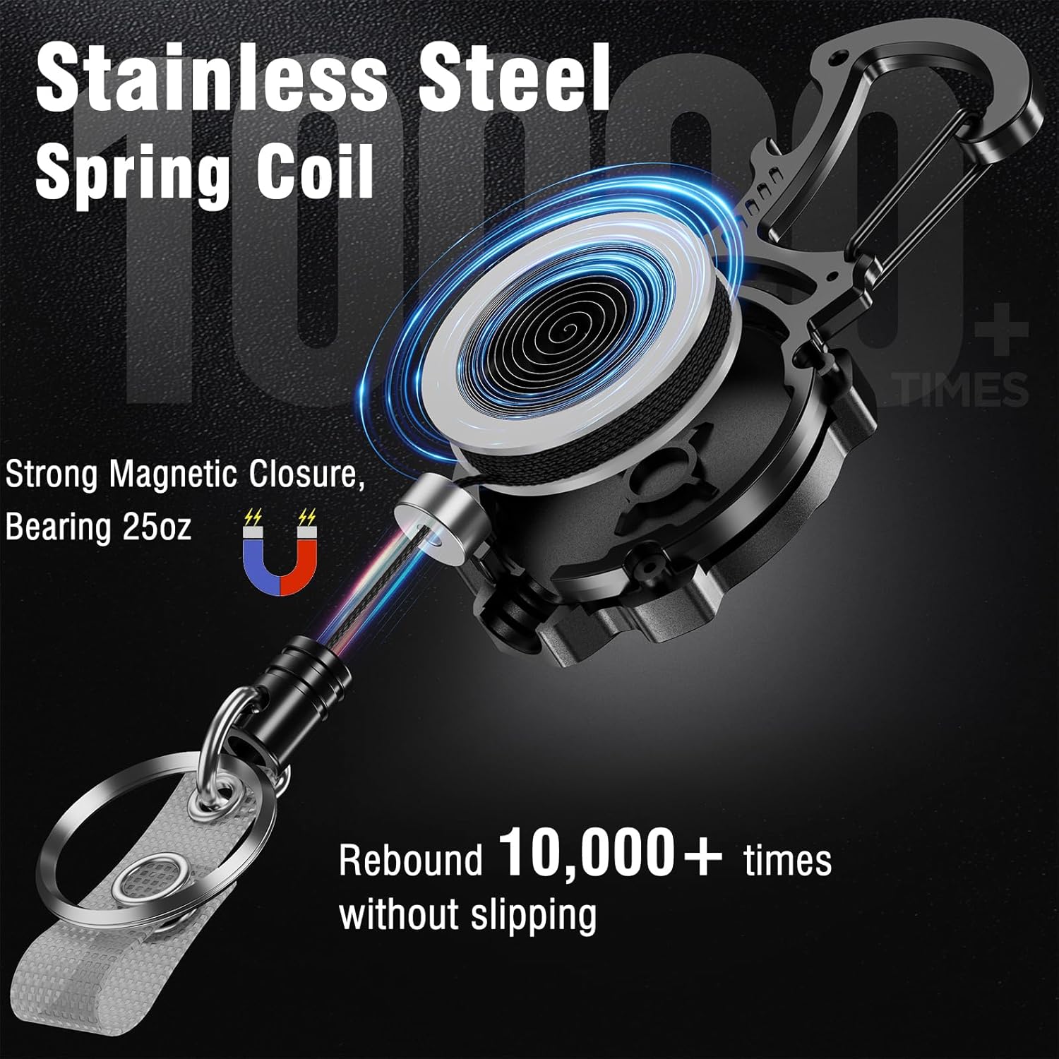2Pack Heavy Duty Retractable Keychain, Tactical ID Badge Holder Reel Carabiner Clip with Magnetic Closure for Men, Unbreakable Sandwich Construction with 31" Dyneema Cord, Bearing 25oz