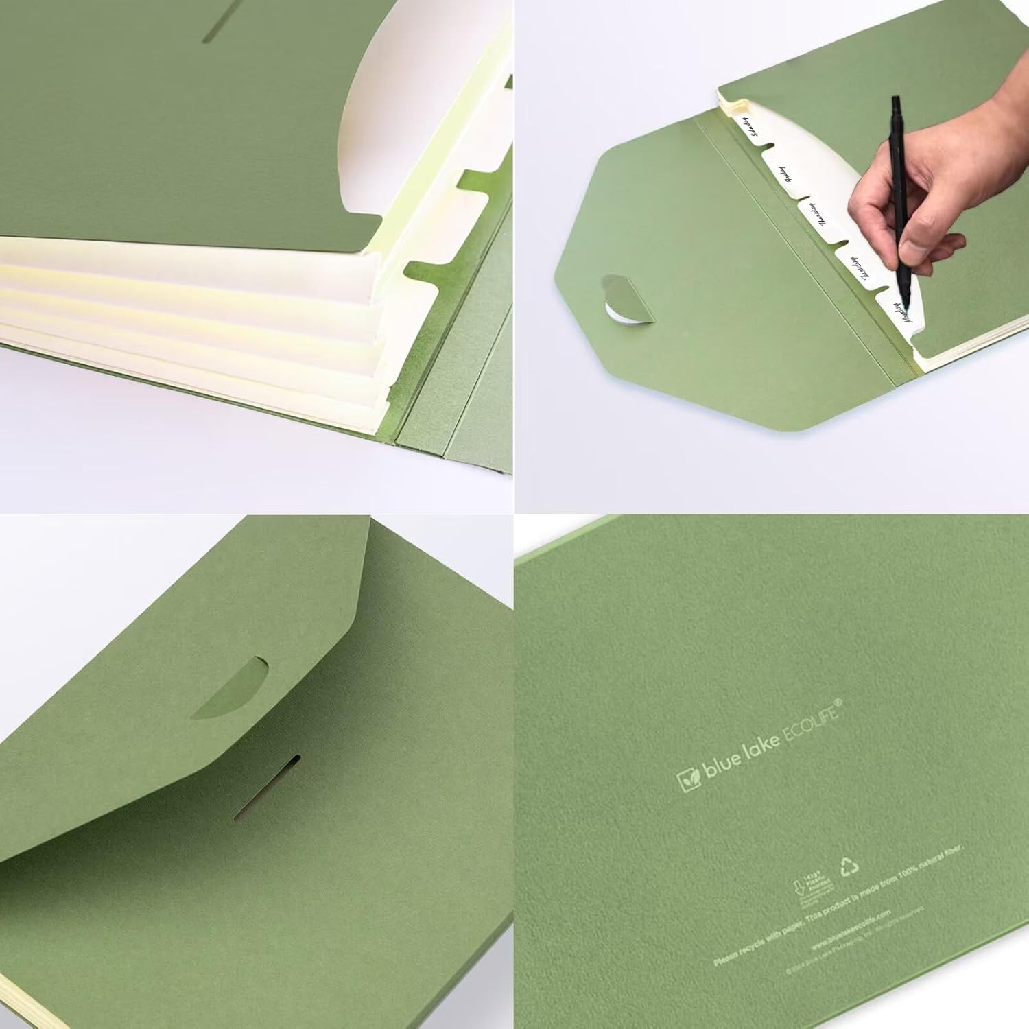 Blue Lake ECOLIFE File Folders Accordion Organizer Plastic Free 6 Pocket Expanding Folders Green