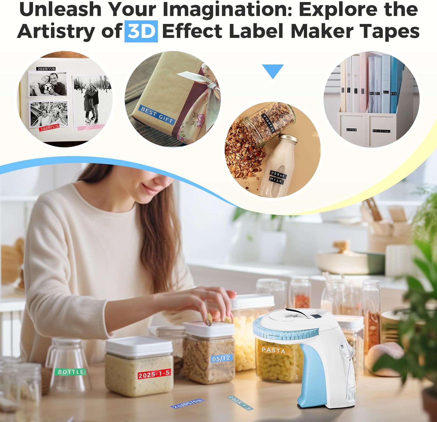 - Waterproof 3D Embossing Label Tapes: These 9mm wide embossing label tapes are water-resistant, oil-resistant, wear-resistant, and fade-proof. They feature strong adhesion and can be removed without leaving any residue, ensuring durable and reliable use for both indoor and outdoor applications. Perfect for labeling kitchen items, storage bins, craft cabinets, scrapbooks, photo albums, and DIY projects