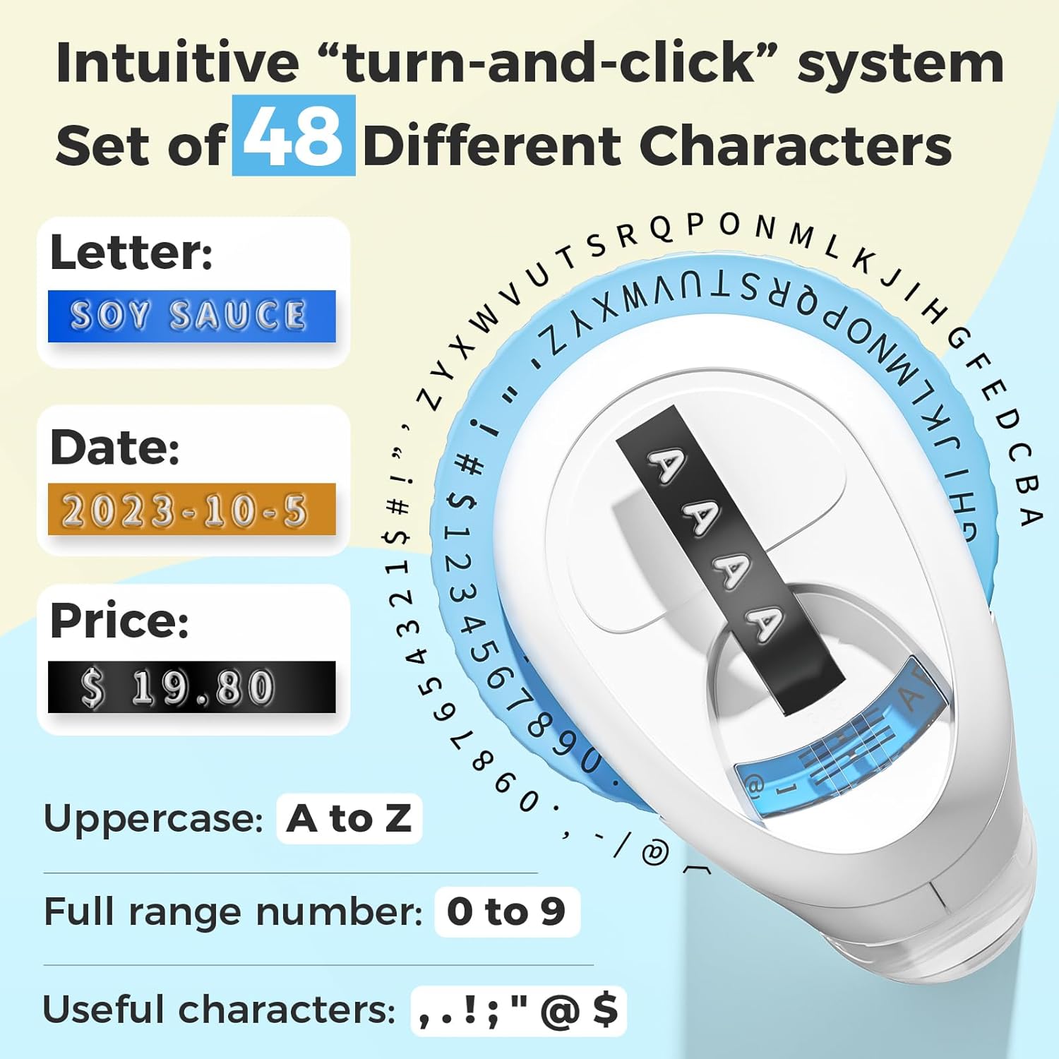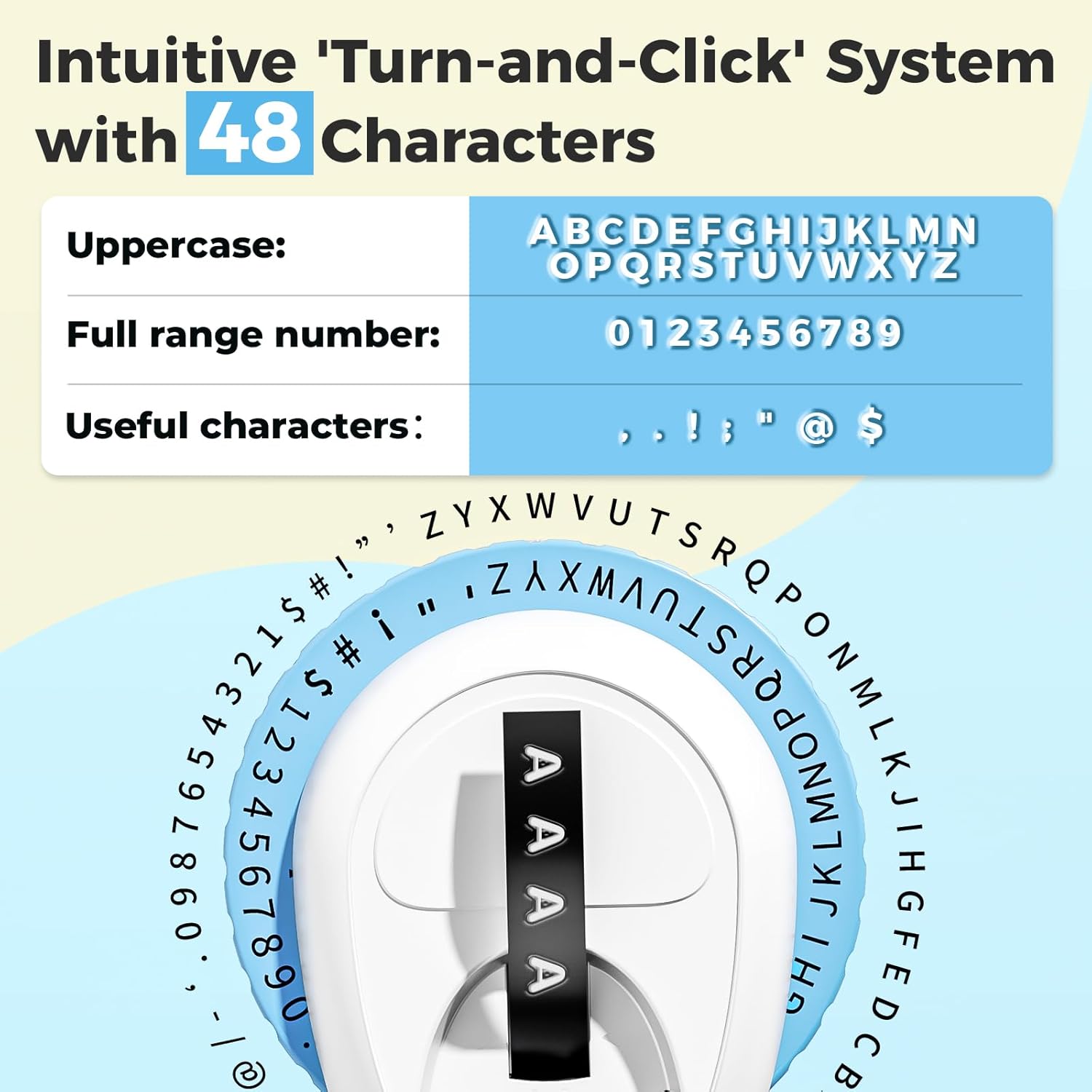 - Personalized 48 Character Wheel: Vintage Embossing Label Maker features 48 characters, including letters, numbers, and symbols. This retro embossed label maker manual operates without batteries, making it an ideal choice for the office, home, or on-the-go. Its compact and lightweight design allows users to easily create labels anytime, anywhere