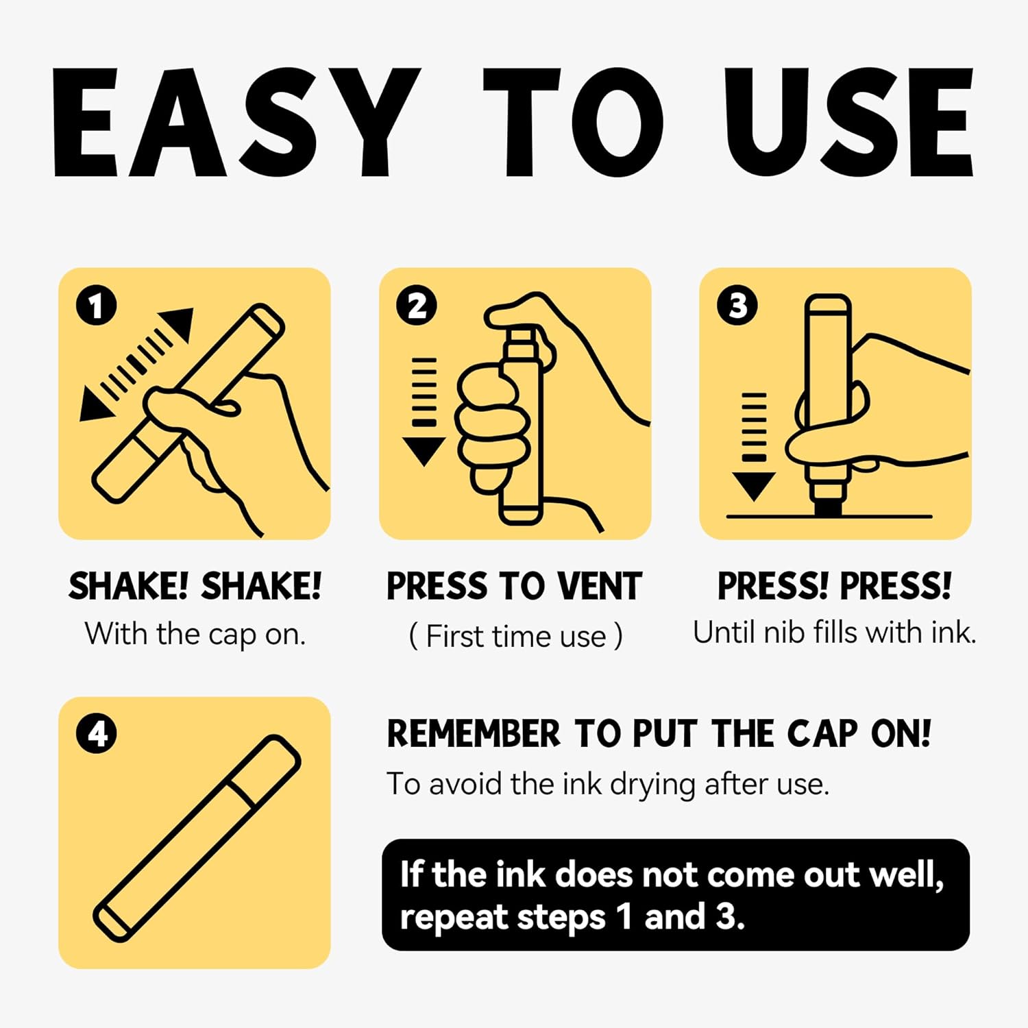 - 3-IN-1 NIB: (fine, medium, and jumbo) The thick tip permanent markers set felt wide tip is not only equipped with 3-IN-1 nib, but also allows the jumbo marker paint pen to produce smooth and even ink