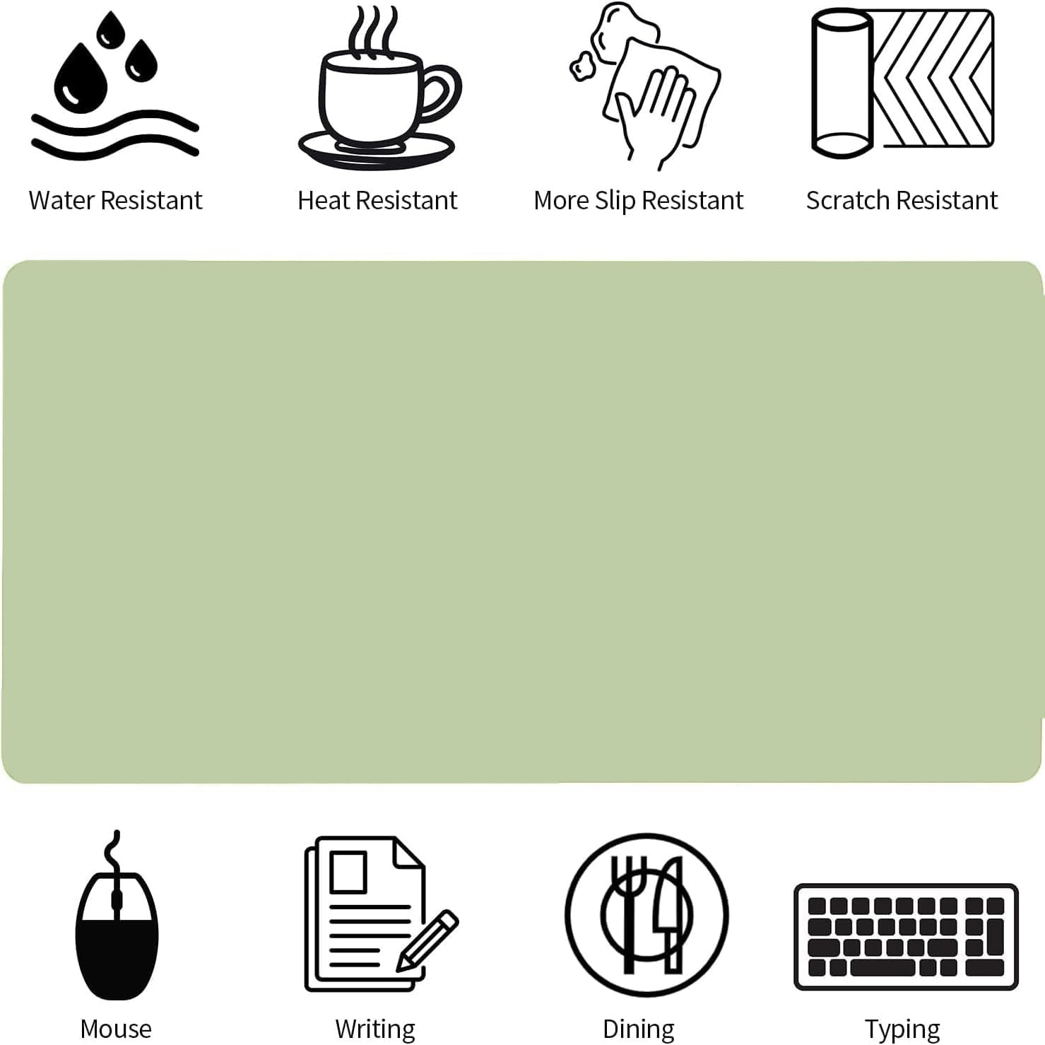 - 【Waterproof & Easy to Clean】The PU leather material desk mat is waterproof and heat resistant, easy to clean. It can perfectly protect your desktop from drinks, ink and other liquids. For cleaning, just wipe its surface stains with a damp cloth. Please note that its suede backing is not waterproof!