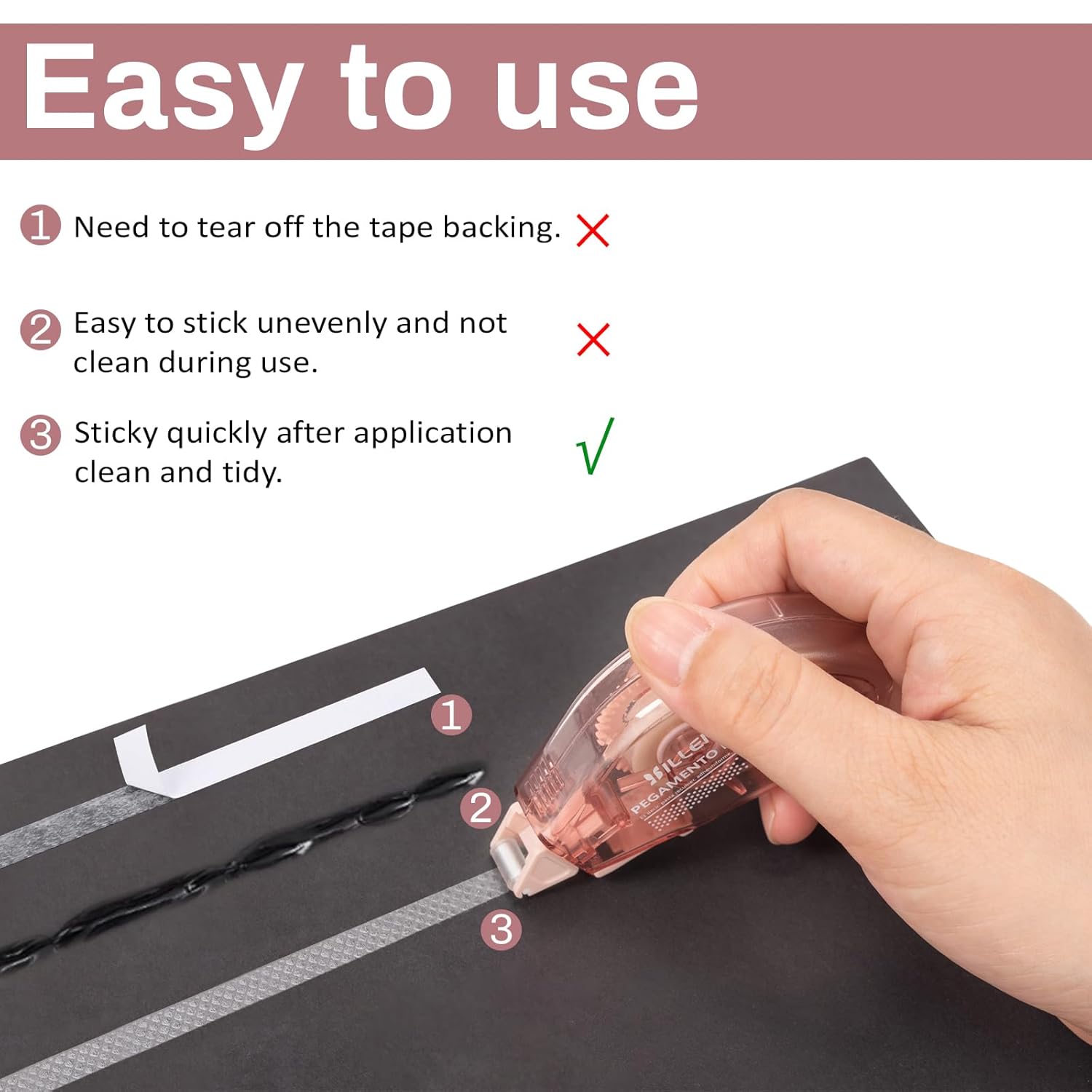 - Clean and Neat: Unlike ordinary double-sided tape or liquid tape, the adhesive roller is more convenient to use, press and pull, fast and clean, with no wrinkles. You don't have to wait for the glue to dry. It only takes a few seconds to get the job done