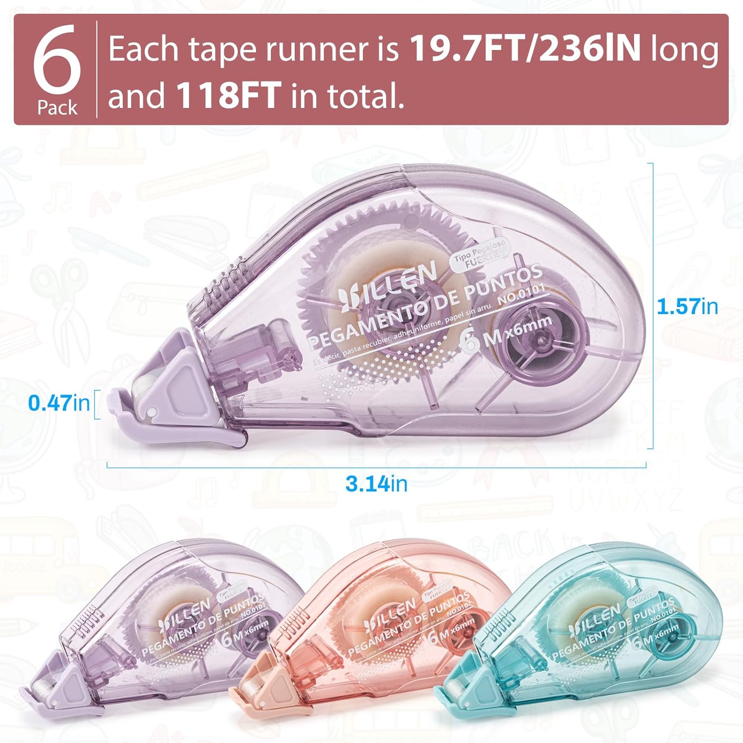 6 Pack Glue Tape, Double Sided Tape Roll for Crafts, Sticky Scrapbook Tape Runner, Scrapbooking Supplies for Crafting Photo Album Cards Journal School Office Gift Wrapping - 0.24IN x 20FT