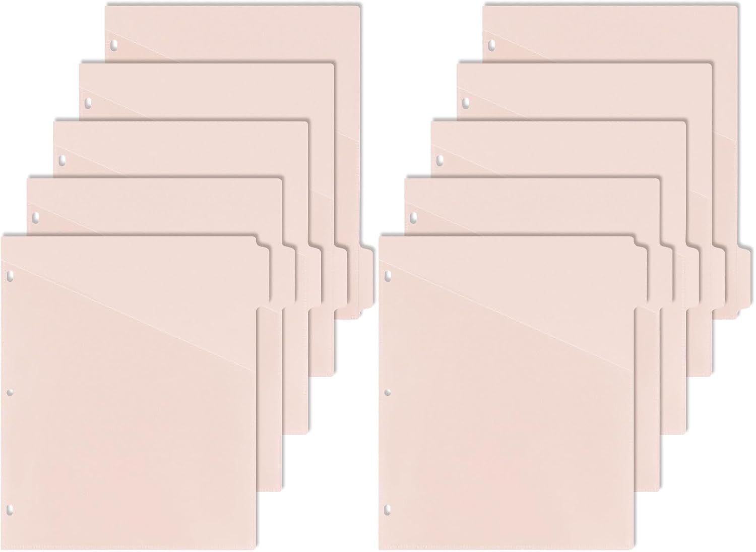 - 【Fits 3 RIng Binders】3 Holes punched, fit in 3 ring binders. Our Plastic Pocket Dividers are measured 9.3 X 11.2 inches, providing the maximum coverage for your letter-sized paper. There are a total of 5 dividers for 3 ring binder with pockets in the package.