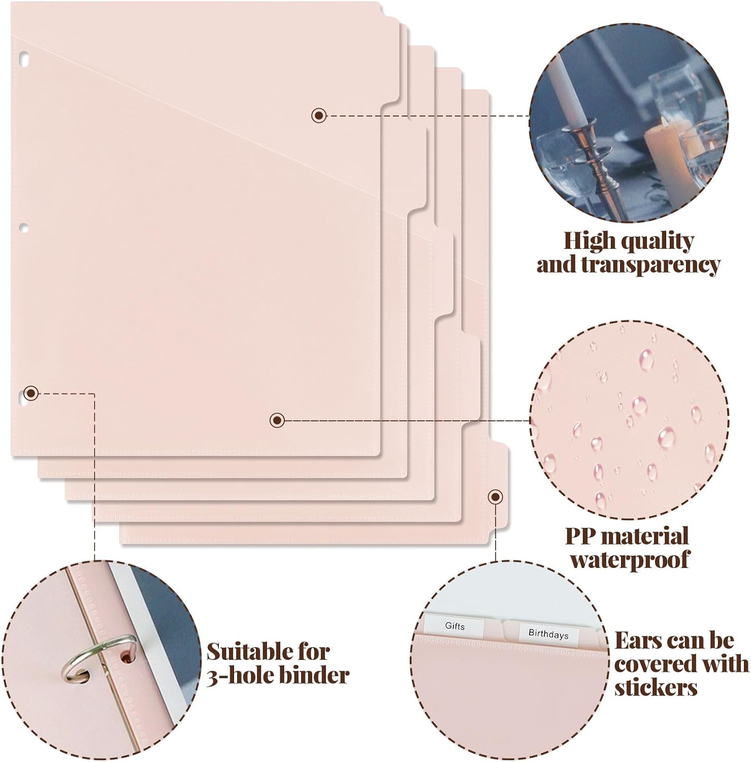 - 【Clear Front Inclined Pocket】Each plastic dividers features an inclined front pocket, are the perfect way to store loose papers in your 3-ring binder divider, and the semitransparent design also offer clear and easy browsing.