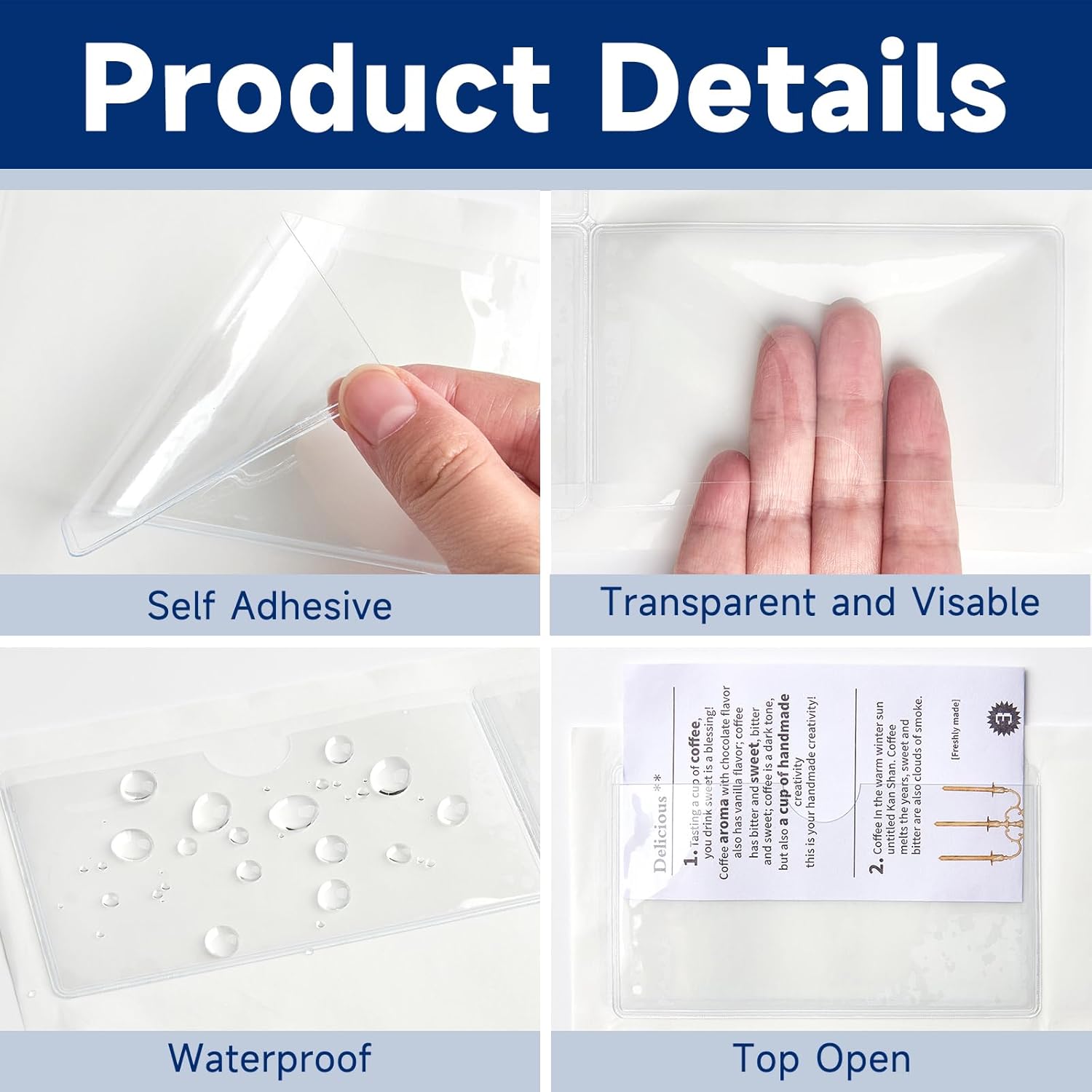 - Waterproof Material: Our clear adhesive pockets are made of sturdy PVC plastic, BPA free, non-toxic, not easy to deform and also protect your cards from water and dust, keeping your card safe