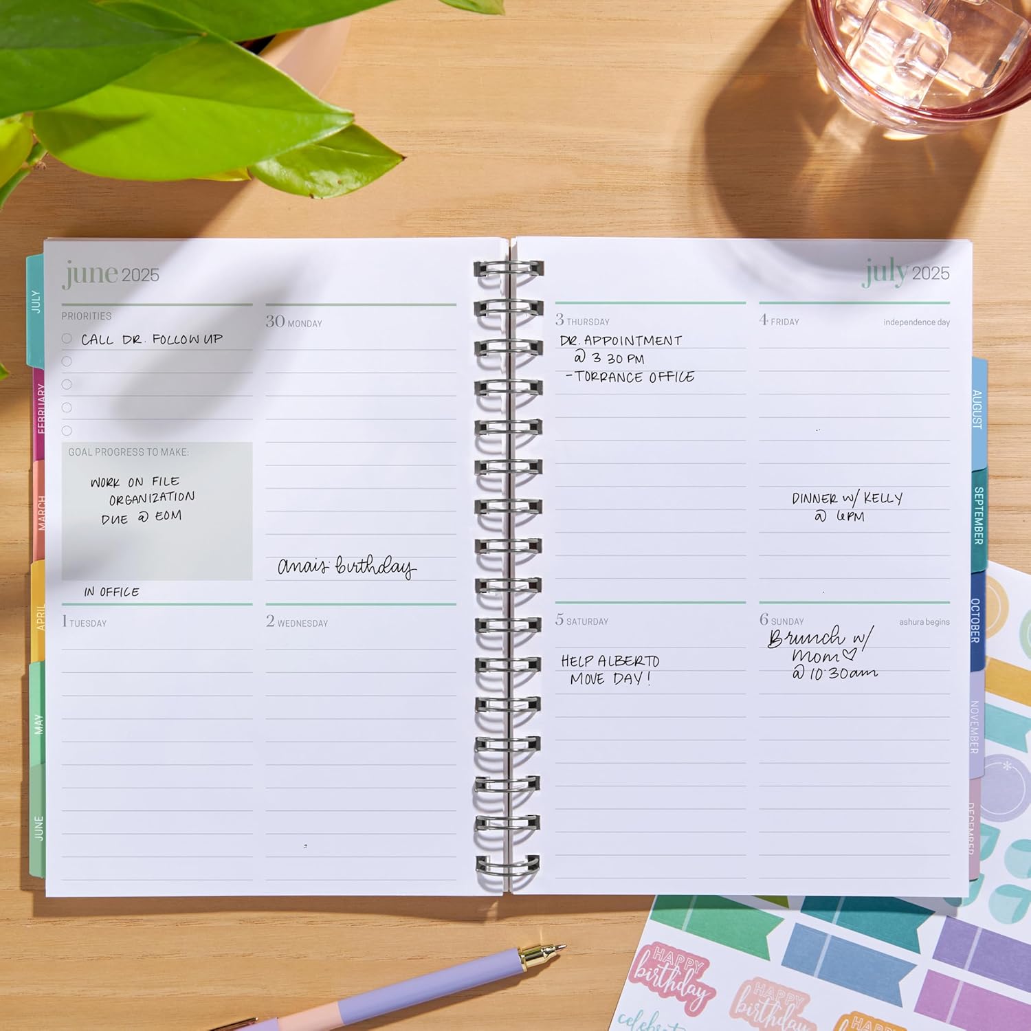 - STICKERS INCLUDED FOR FUN & FUNCTION: Two sheets of planning stickers are included in this personal and work planner to bring color and personality to your pages. Use them to highlight events, deadlines, or self-care days. These accessories enhance your planning without clutter—perfect for fans of Erin Condren accessories