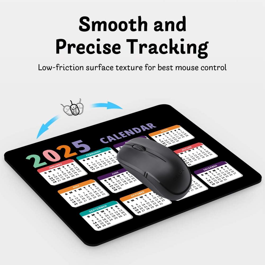 2025 Calendar Black, Computer Mouse Pad with Non-Slip Rubber Base, Mouse Pads for Computers Laptop Mouse 9.6 x 7.9 inch