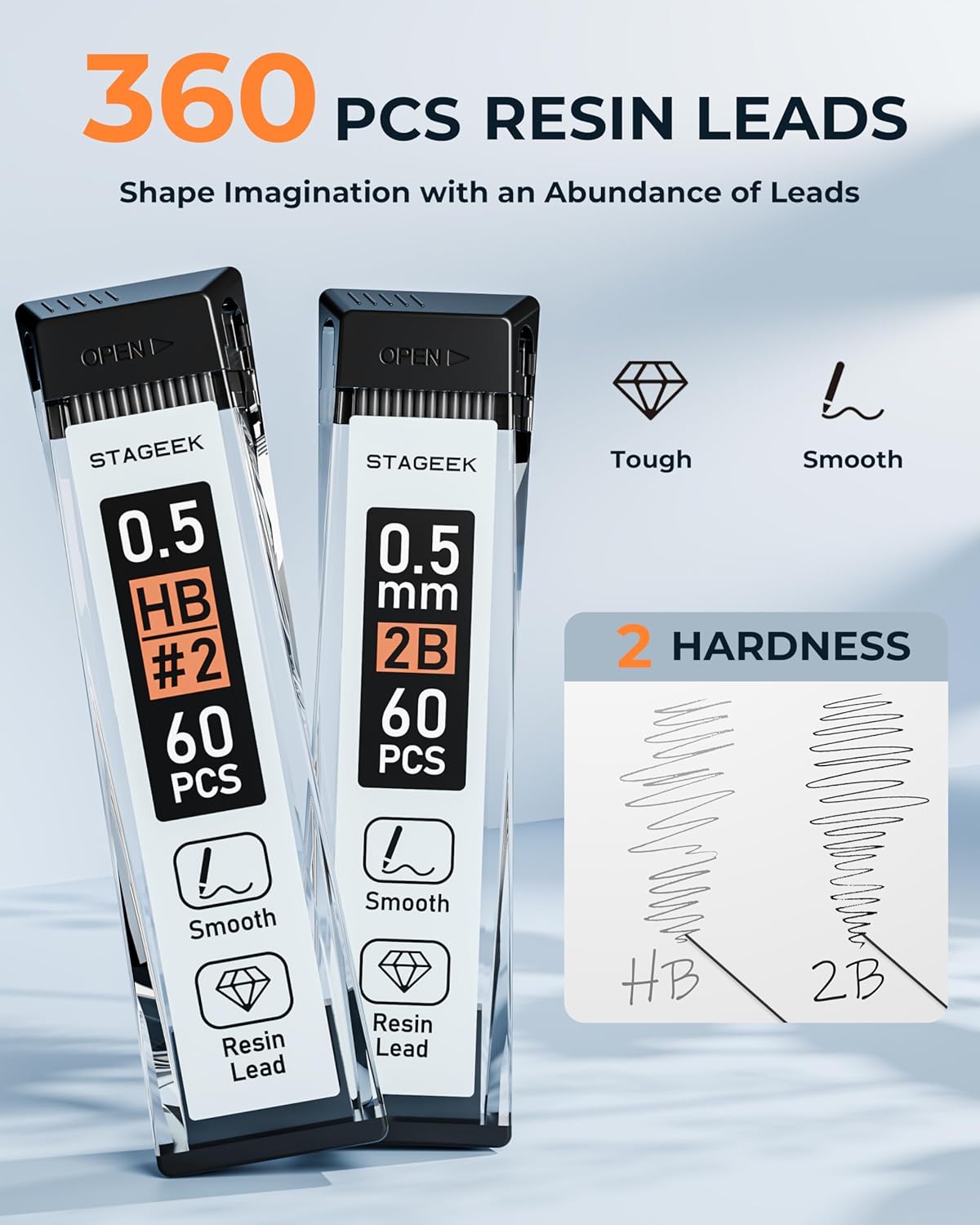 - HB & 2B Hardness: The HB 0.5mm lead refills are perfect for everyday writing, offering balanced hardness. The 2B lead is ideal for fine details and sketching. These leads are durable, break-resistant, and produce minimal dust, ensuring smooth, effortless writing.
