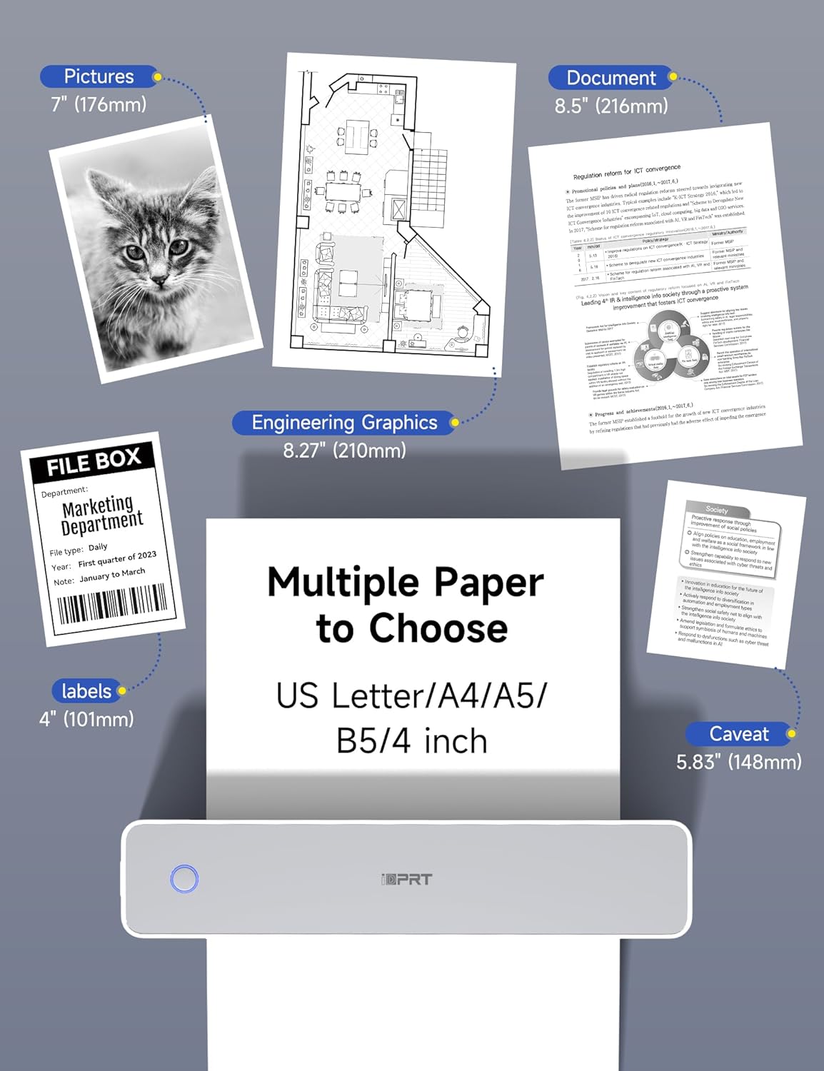 - ✅PRINT ANYWHERE WITHOUT THE INK HASSLE:Say goodbye to messy ink cartridges. This portable printer creates sharp 300DPI documents faster than you can staple papers – we’re talking 4-6 seconds per A4 page. Whether you’re printing contracts at a coffee shop or boarding passes at the airport, it delivers professional results every time