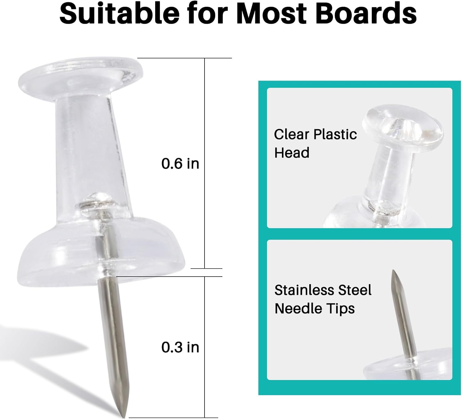 60Pcs Push Pins for Bulletin Board, Thumb Tacks for Cork Board, Clear Plastic Head, Steel Tip, Thumbtacks for Wall Poster Photo Maps Pictures Office Home Decor