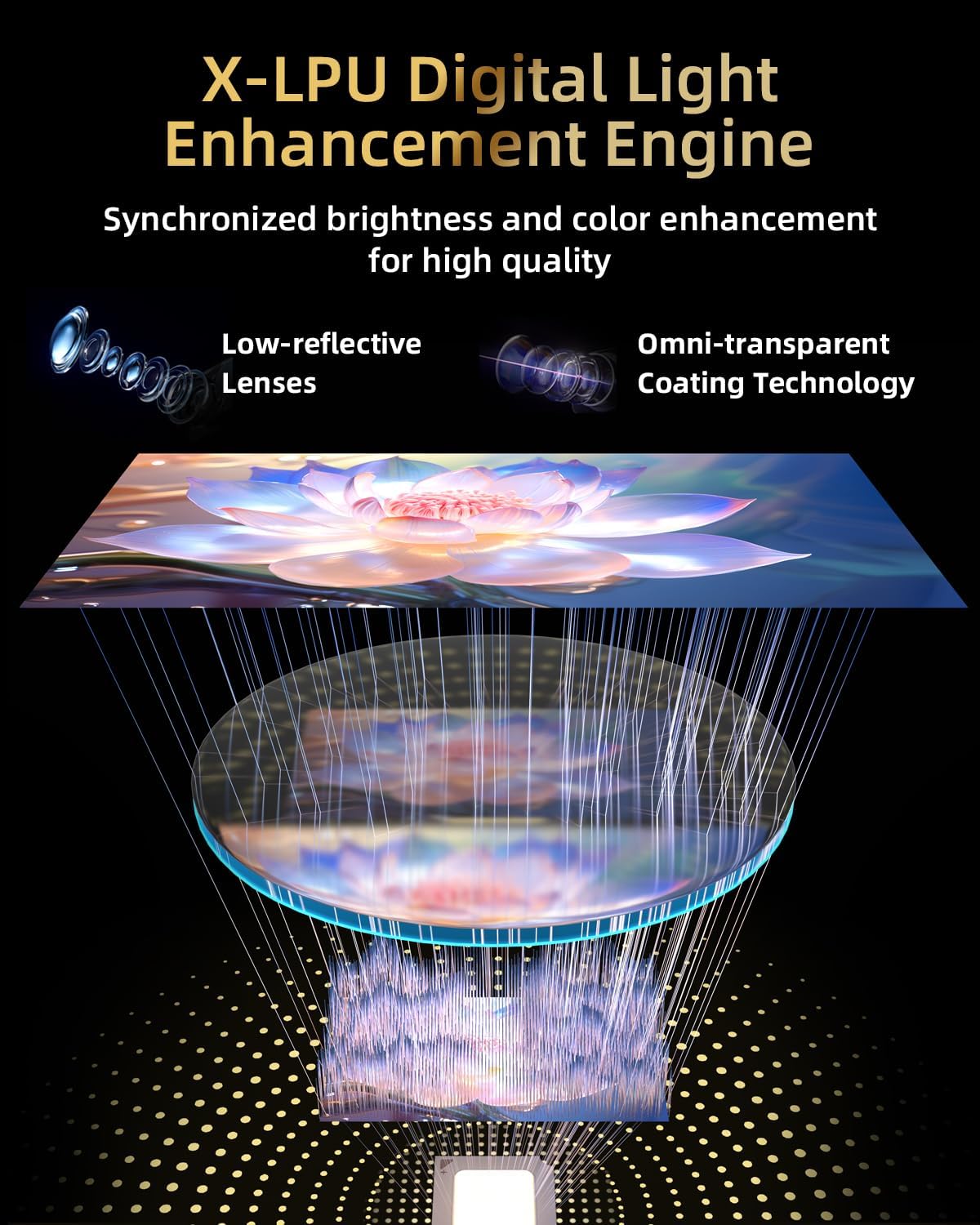 - 【4K & HDR10+ & 6 Colour LED】 Ultra HD 4K decoding with Native 1920*1080P Resolution, HDR 10+,DCI P3 wide Color Gamut and 6 color LED technology, the 4K home projector delivers crisp images with rich detail and true-to-life colours for exceptional viewing pleasure.