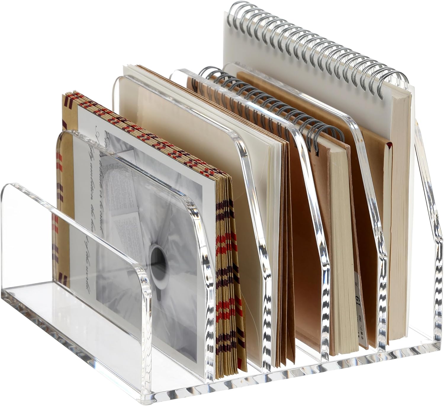- ๐๏ธ5 COMPARTMENT SPACE HIGH CAPACITY FILE SORTOR: Our acrylic file sorter measures 6.5x 6.7 x 4.57inches with spacious storage capacity, providing ample storage and sorting space for your emails and files. It is the perfect desktop organizer for organizing files, magazines, documents, letters, books, binders, folders, emails, eye shadow trays and more.