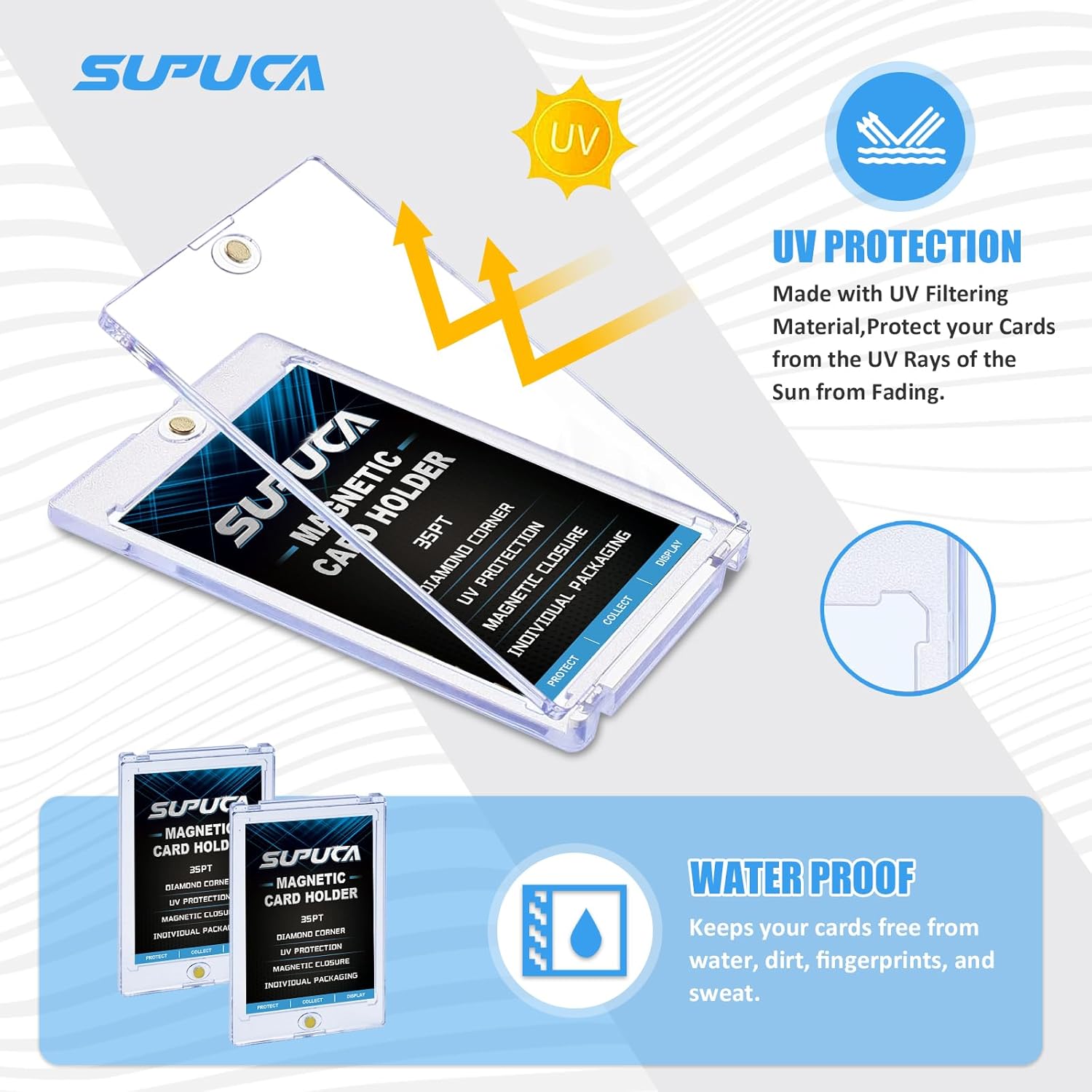 - Diamond Corner Design: The diamond corners are designed to protect your favorite cards from any damage. Your cards will never be bent, scratched, or creased again
