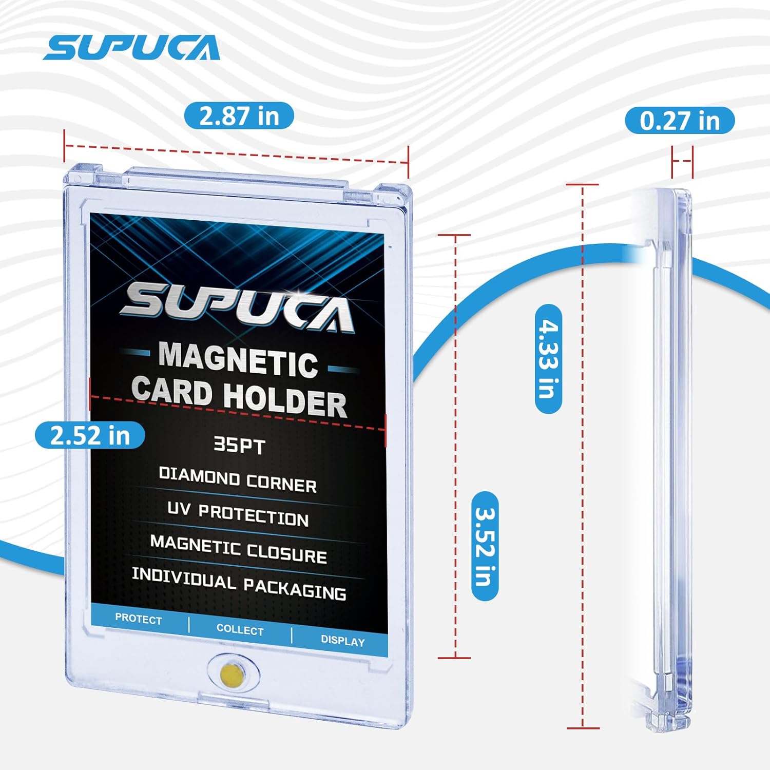- Package Includes: 25 pack of 35pt magnetic card holders, measure 4.33"L x 2.87"W outside and 3.52"L x 2.52"W inside, sized to fit standard size (2.5" x 3.5") trading cards. 3packs card display stand