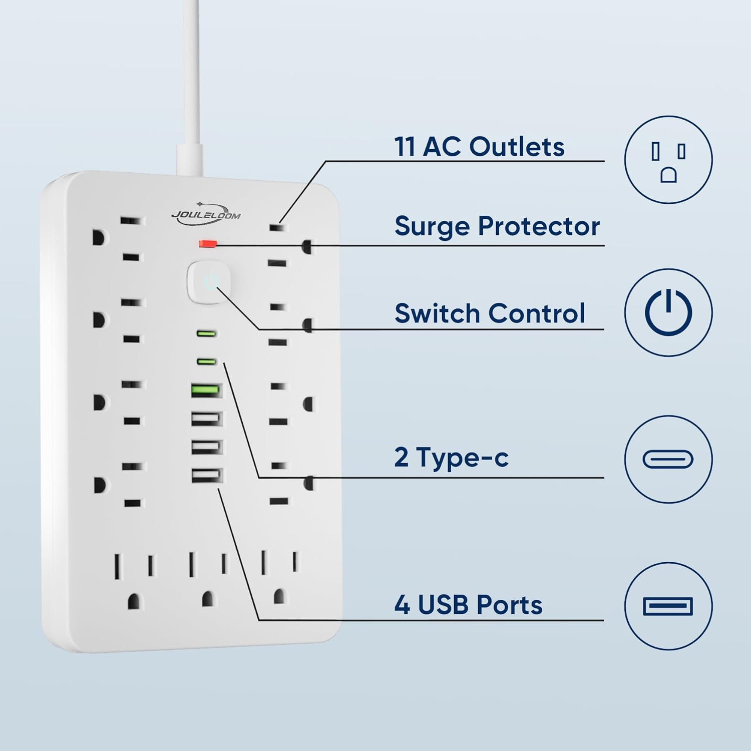 - â ăMore Thoughtfully For UseăWith 4 centrally positioned USB ports & 2 USB-C ports, alongside 11 AC outlets strategically placed around the edges. This scientific configuration ensures optimal utilization of each socket, accommodating a wide array of devices seamlessly.