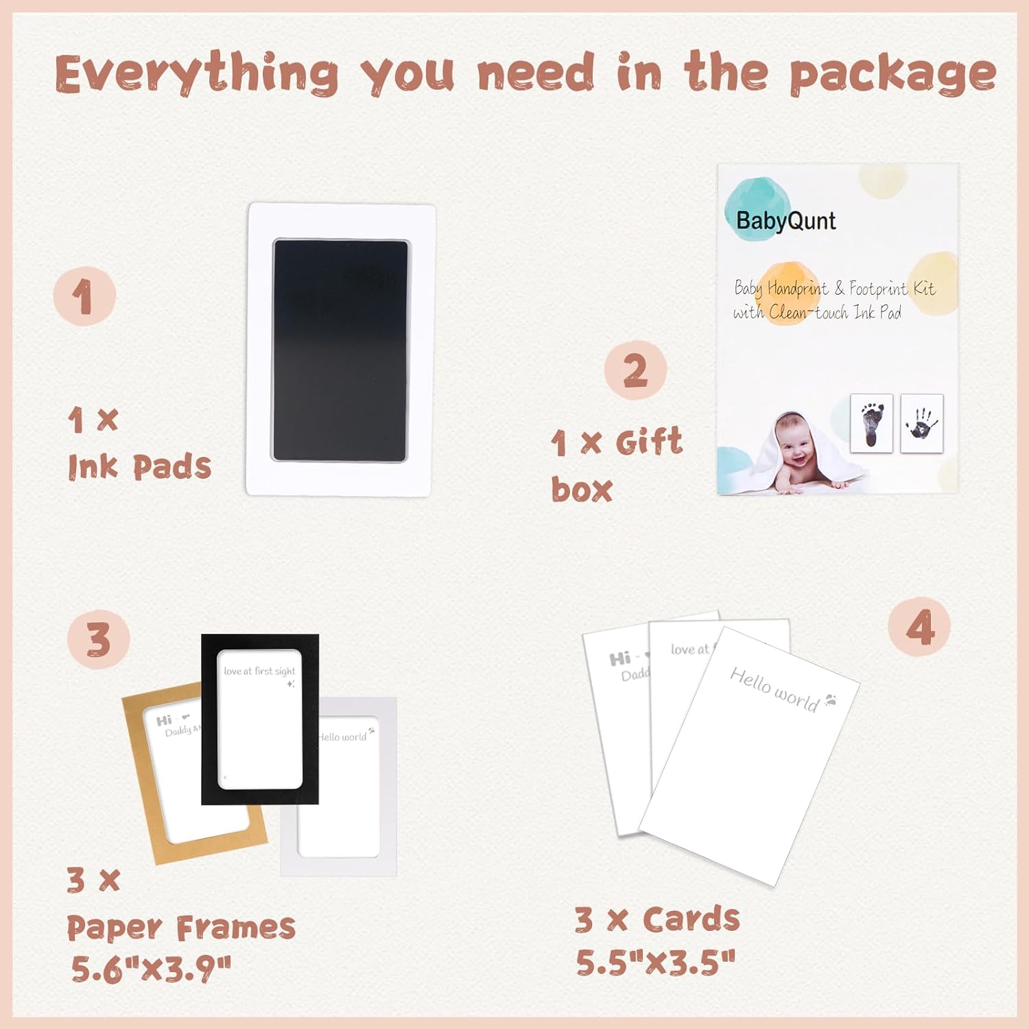 - 【Product Details】: Our baby hand and footprint kit measures 5.0"x3.2" with an ink window of 3.7"x2.3", which is the best size for recording hand and footprints of newborns 0-6 months old or pet paw prints . The ink pad for baby hand and footprints includes 1 clean touch ink pads, 3 stamping cards, and 3 display frames, ensuring you have ample opportunity to capture the best stamp.