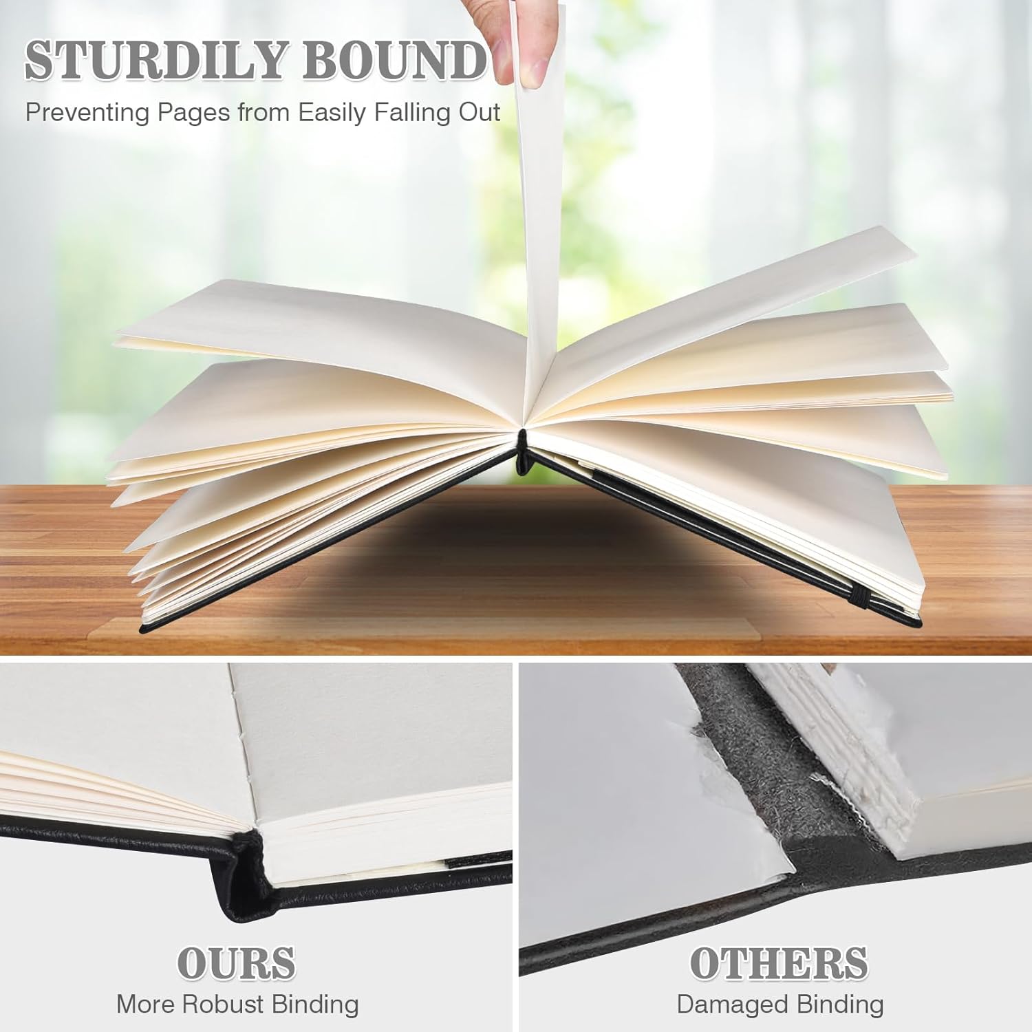 - 【Hardcover Faux Leather Cover】Crafted with a luxurious faux leather cover, these sketchbook journals are not only animal-friendly but also provide a pleasant tactile experience. The hardcover of work notebooks ensures your entries are well-protected, making these leather sketchbook treasured keepsakes. Designed to lay flat at 180°, they facilitate effortless writing.