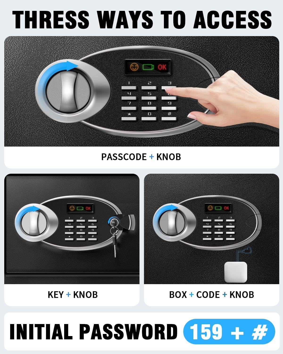 - Lock Type : Electronic Combination Lock, Key