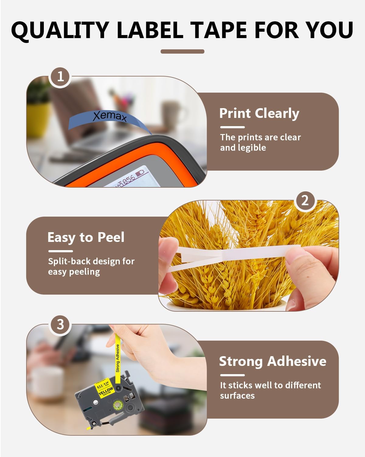 - 6mm 1/4' Tz Label Tape Compatible with Brother P touch Label Makers: PT-D220, PT-D410, PTD460BT, PT-2040W, PT-2040SC, PT-2040C, PT-D200, PT-D201, PT-D202, PT-D210, PT-D215e, PT-E100, PT-E105, PT-E110, PT-H100, PT-H105, PT-H110, PT-H111, PT-H200, PT-P300BT, PT-D400, PT-D450, PT-E300, PT-H300, PT-D600, PT-E500, PT-E550W, PT-H500, PT-P700, PT-P710BT, PT-P715eBT, PT-P750W, PT-D800W, PT-E800W, PT-P900, PT-P900W, PT-P950NW, PT-P910BT