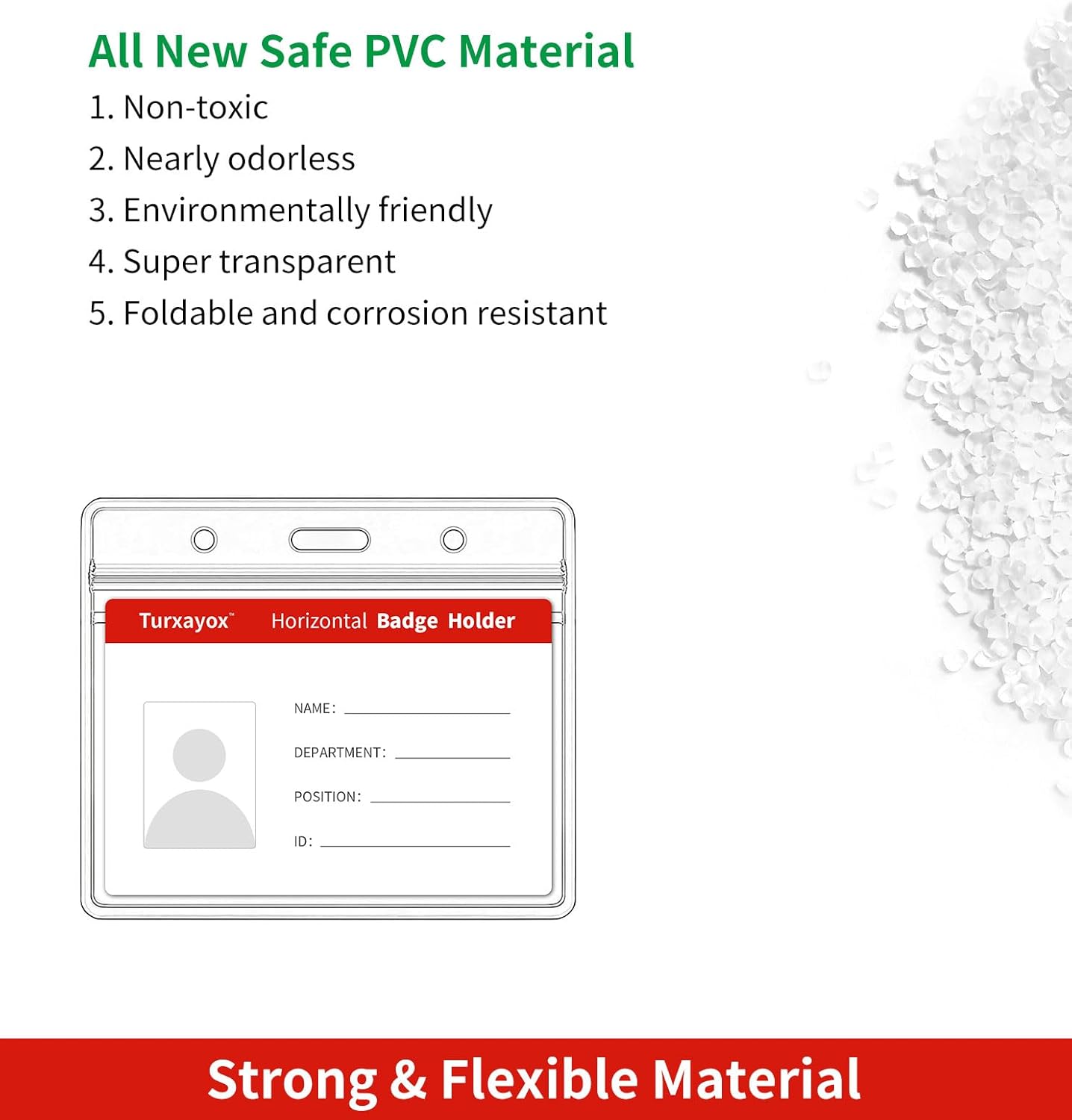 - Strong & Flexible Material: Made from super transparent and lightweight plastic, our badge holder is soft, wear-resistant, and corrosion-resistant. It can be folded and unfolded multiple times without leaving any traces. The hanging slot/holes are designed to be sturdy and will not break or distort even after repeated use.