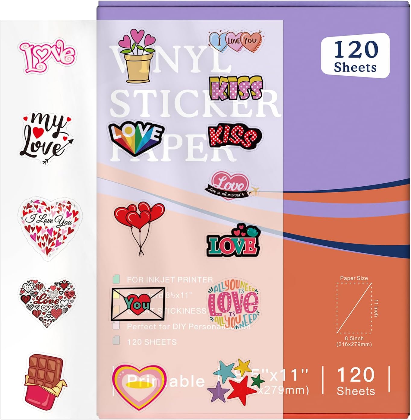 120 Sheets Printable Clear Sticker Paper for Inkjet Printer, Premium Vinyl Transparent Sticker Paper Waterproof, Dries Quickly, Vivid Colors, Tear Resistant, 8.5x11" Labels Great for Cutting Machines