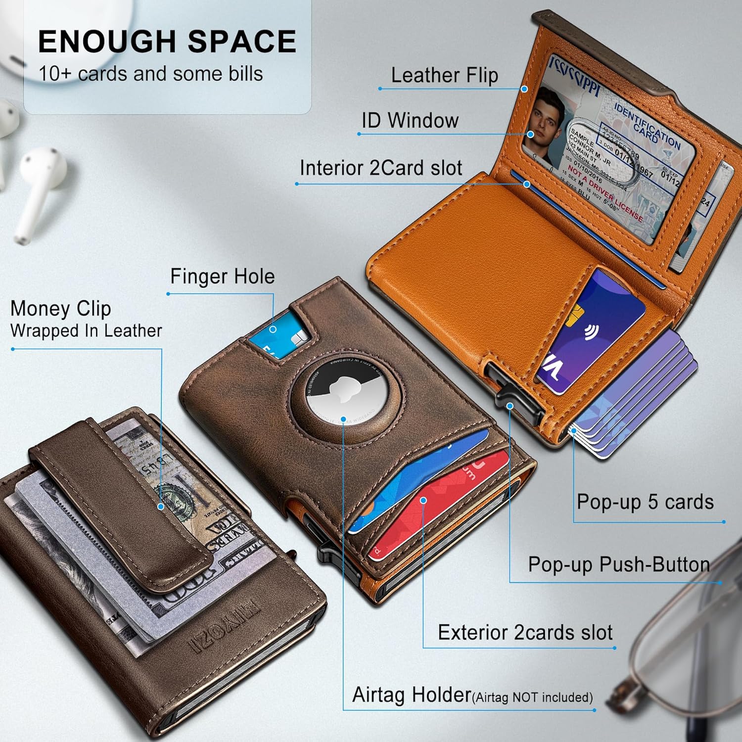 Airtag Wallet for Men,with Money Clip 10 Cards Metal Case Smart Slim Pop Up Credit Card Holder Flip with Magnetic Closure RFID Blocking wallet with Gift Box