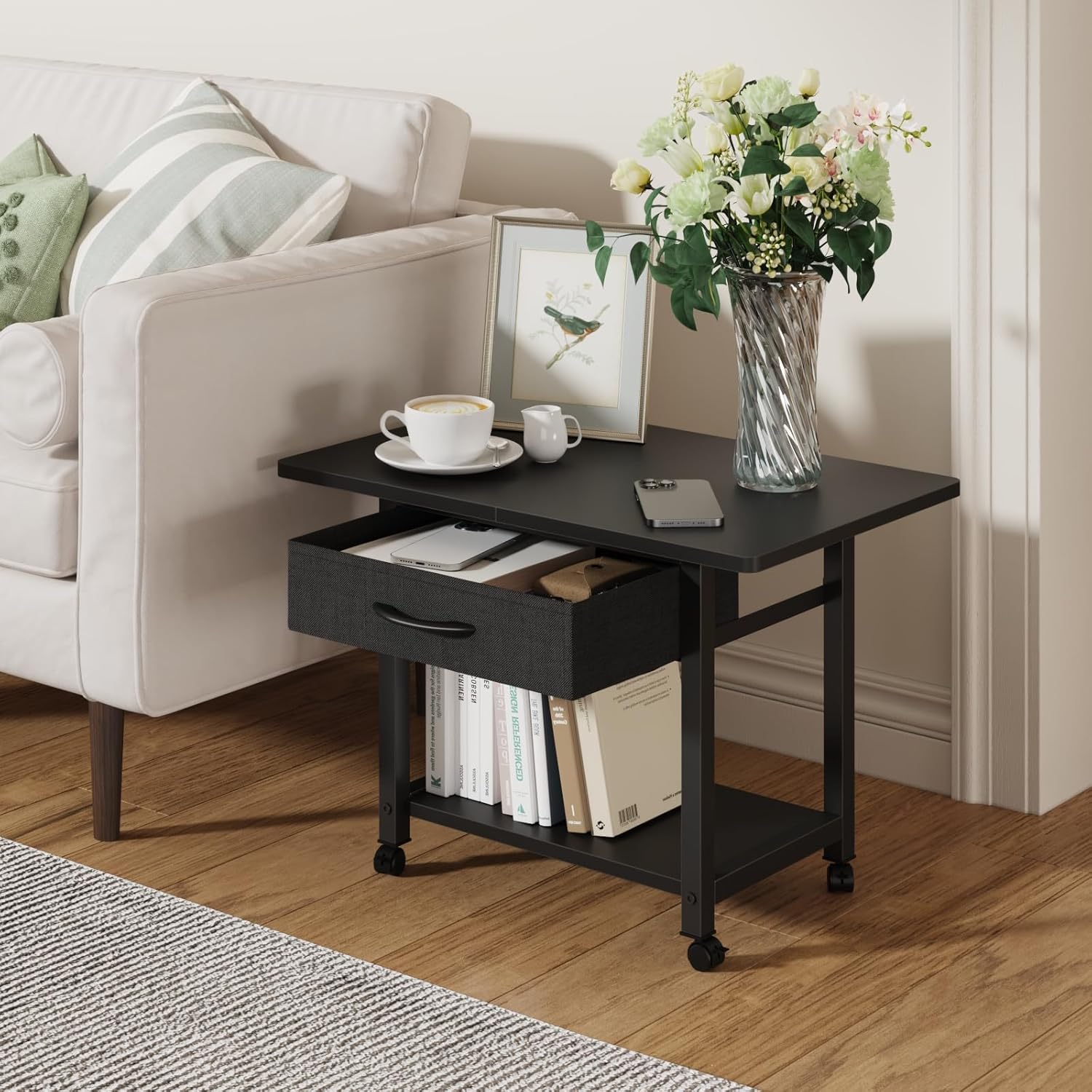 - 【Large Printer Stand】Size:22"L×15"W×15.8"H. Large spacious tabletop can fit most printers: fax machines,3D printers,scanner and other office supplies. Not only a printer stand for desk, you can use it as a end table for the bedroom,living room, and a desktop organizer for your kithcen, office.