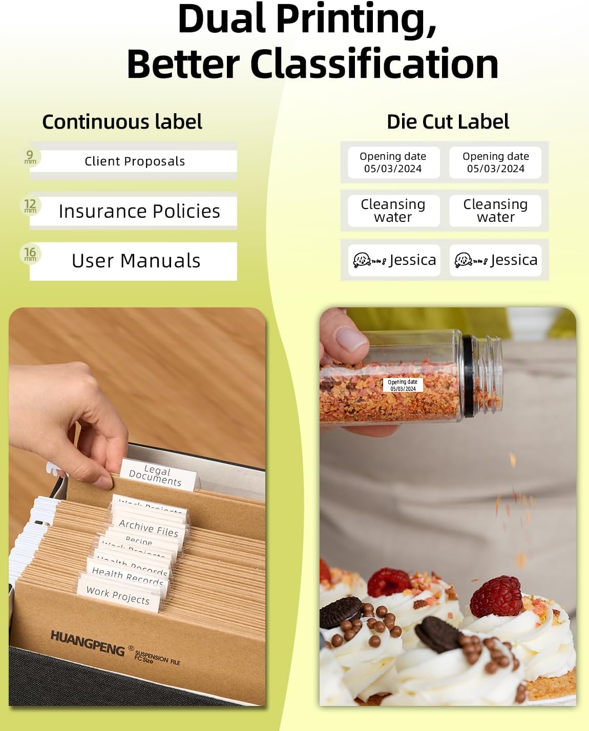 - Clear & Lasting Prints: Thermal printing technology makes for sharp and precise outputs. The easy-peel-and-stick printing tape is waterproof, won't fade for years, and leaves no sticky glue residue