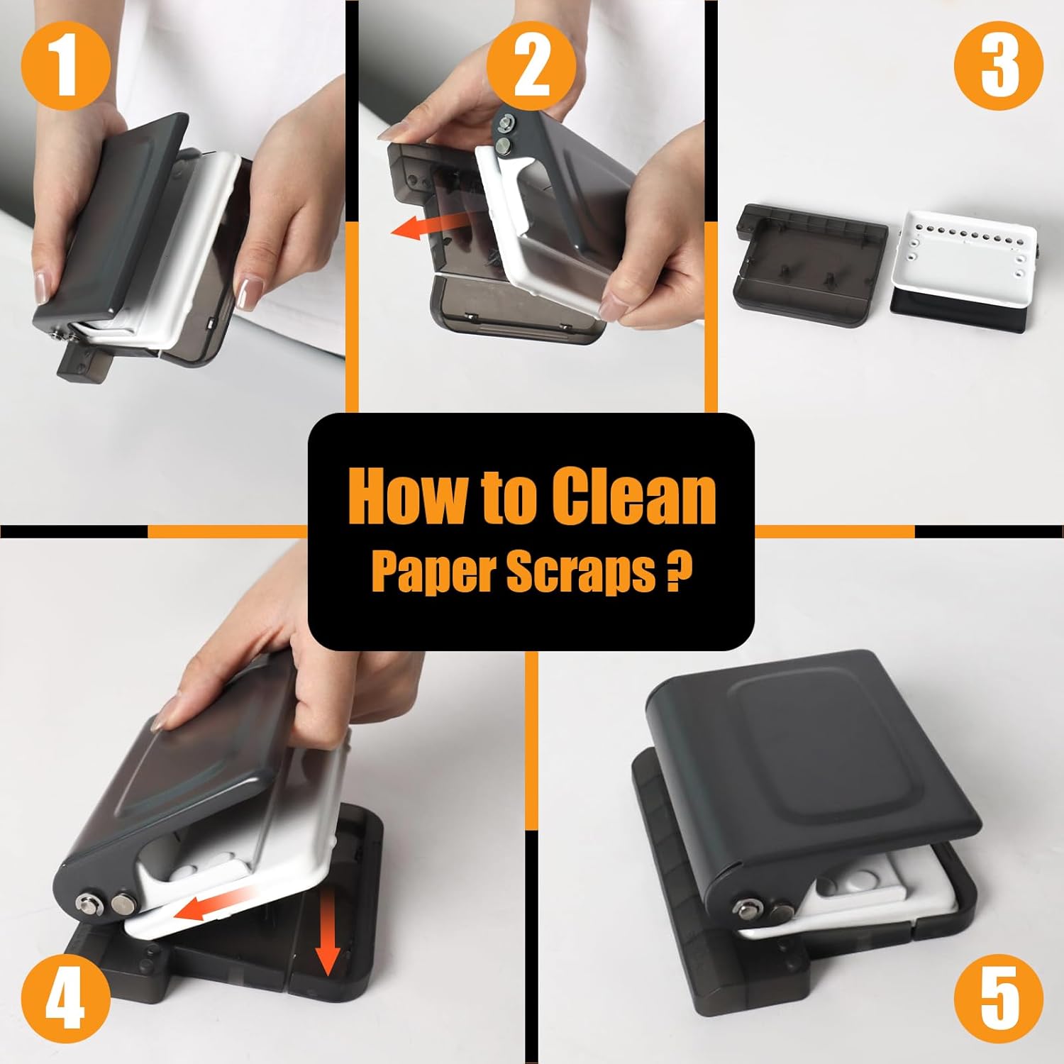 - USER-FRIENDLY DESIGN: Smooth punching heads for easy operation. A handy coil opener tool makes adding or removing pages simple. The bottom tray collects paper scraps, keeping your desk clean