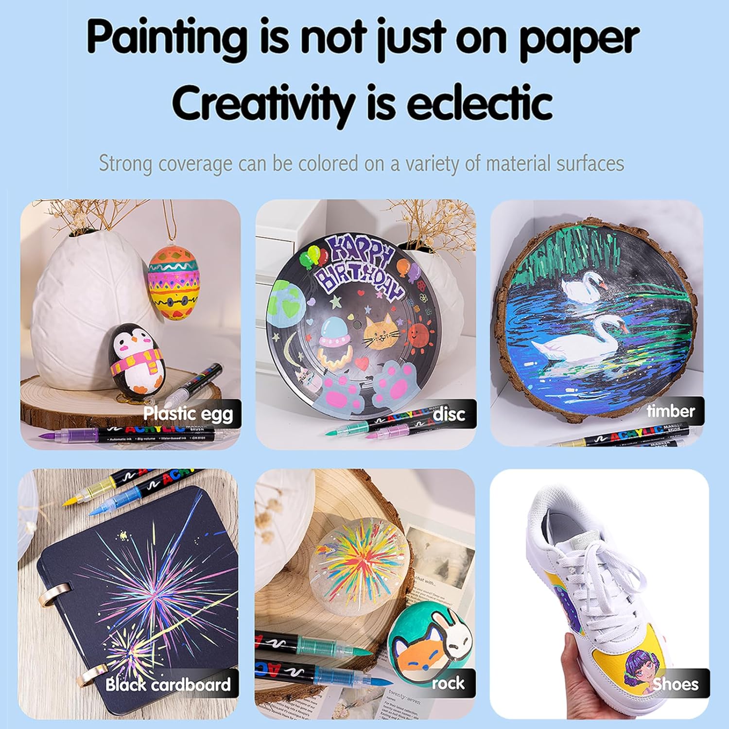 - Painting Essentials: Our art paint pens is designed for the art of painting, its rich colors are not limited to paper; They excel on rock, wood, ceramics, glass, canvas, etc. Our water-based markers are great for artists, craftsmen and DIY enthusiasts