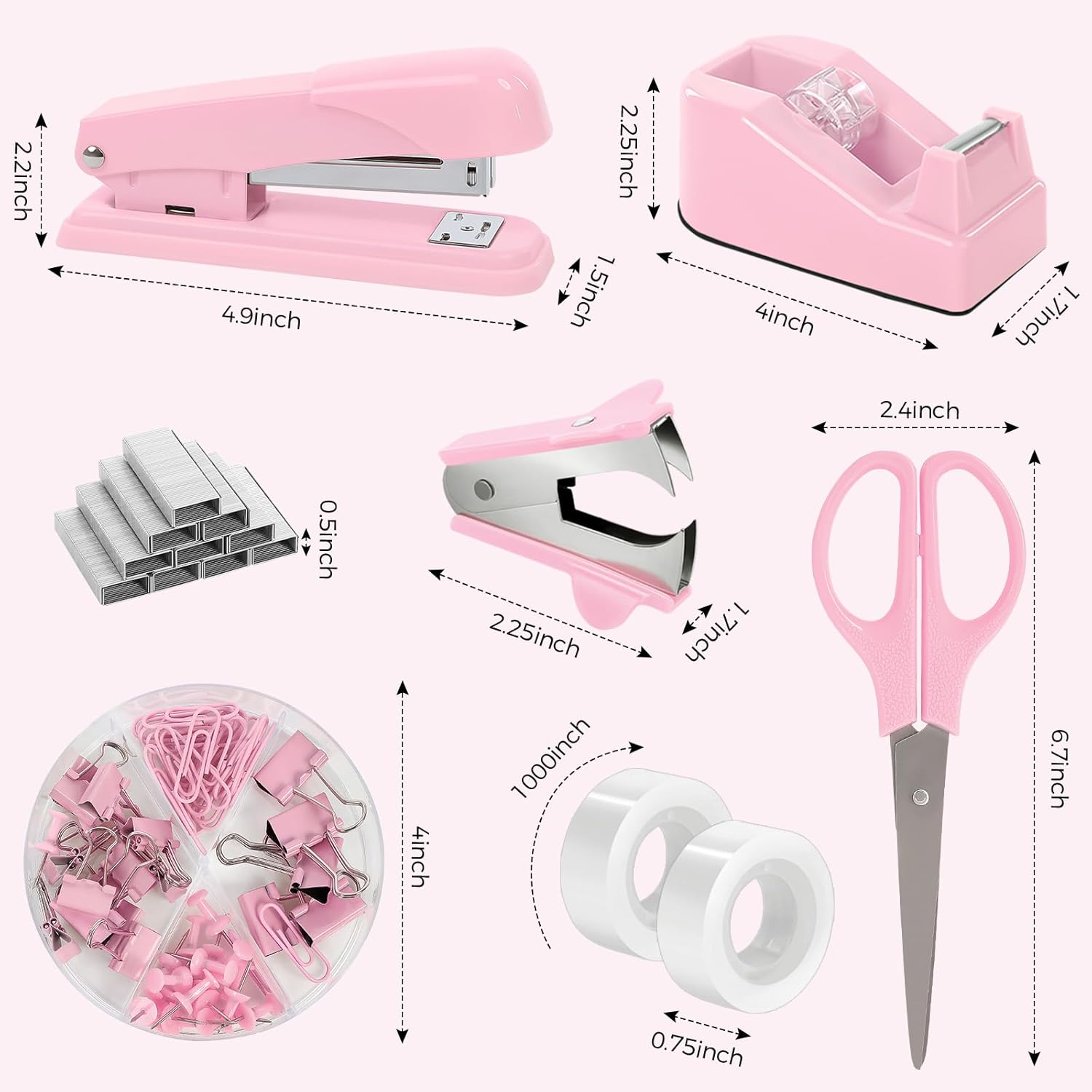- Practical & Stylish Design โ Pink desk supplies set have user-friendly features, easy-to-use stapler and tape dispenser, suitable for anyone who enjoys practical and stylish desk accessories.