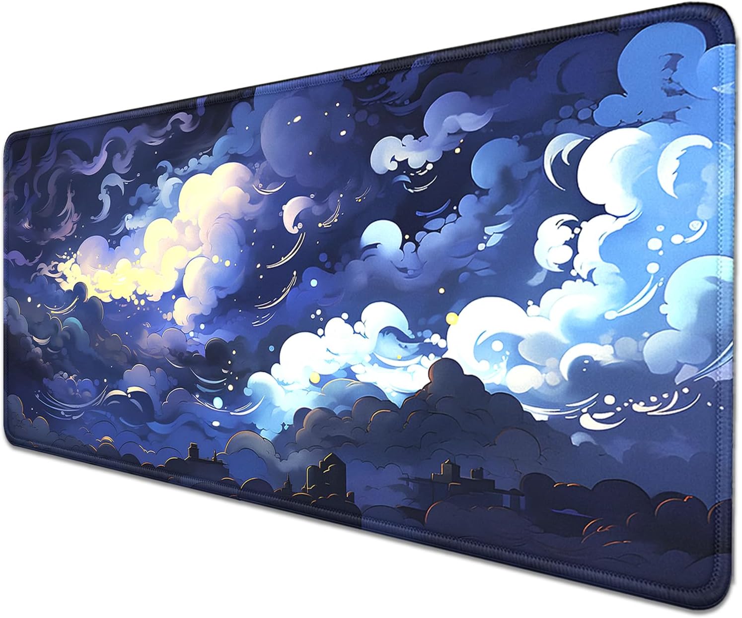 Blue Clouds Mouse Pad,Extended Stars Sky Dark Blue Clouds Mousepad Desk Pad with Stitched Edges,Non-Slip Waterproof Rubber Base Mouse Mat for Office Computer Keyboard Laptop Home(27.5x11.8 in)