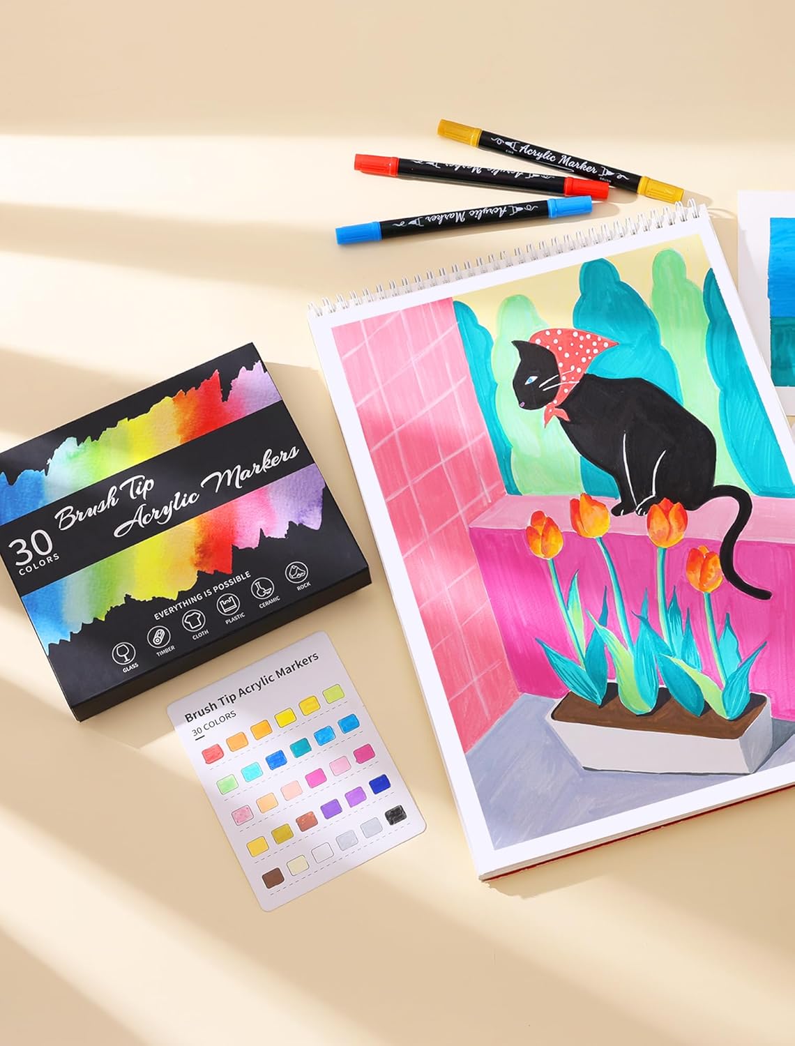 - 30 Vibrant Colors: Our paint markers set offer a selection of 30 rich and vibrant colors that conform to international color standards. Our water-based ink dries ultra-fast on paper, making these acrylic markers a joy for quick, smudge-free creativity. A wide variety of colors allows you to create artwork in different hues to meet all your creative needs.