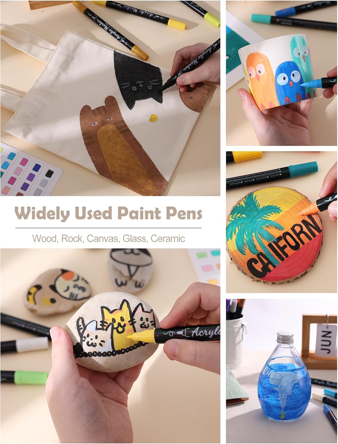 - Upgraded Waterproof and Easy to Use: Unlike ordinary push-type acrylic pens, our craft supplies acrylic paint pens require no shaking or pressing to use. Just open the cap and start creating. Made with professional-grade acrylic paints, odorless and non-toxic, vibrant colours, fast drying, non-fading, smooth flow without leakage, strong coverage and waterproof. It's the perfect choice for maintaining the vividness and beauty of your art works.