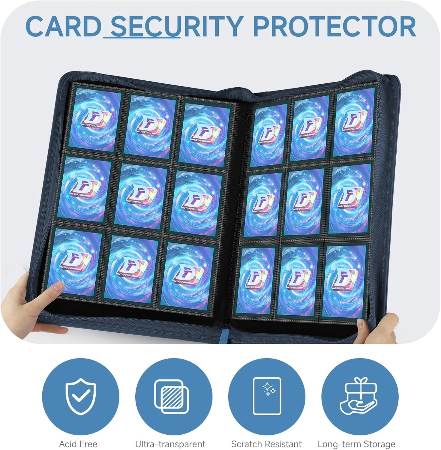 - Thoughtful Details: Different coloured card binders are matched with different coloured zips to meet your personalised needs.Side card pocket to prevent card spillage.Thickened shell design,give your collectible cards stronger protection.