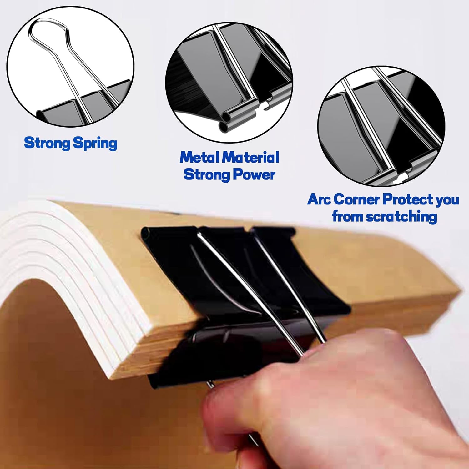 - Strong Material: Our binder clips are made of tempered steel are reusable and springy, so clip and remove without leaving the mark of staple.