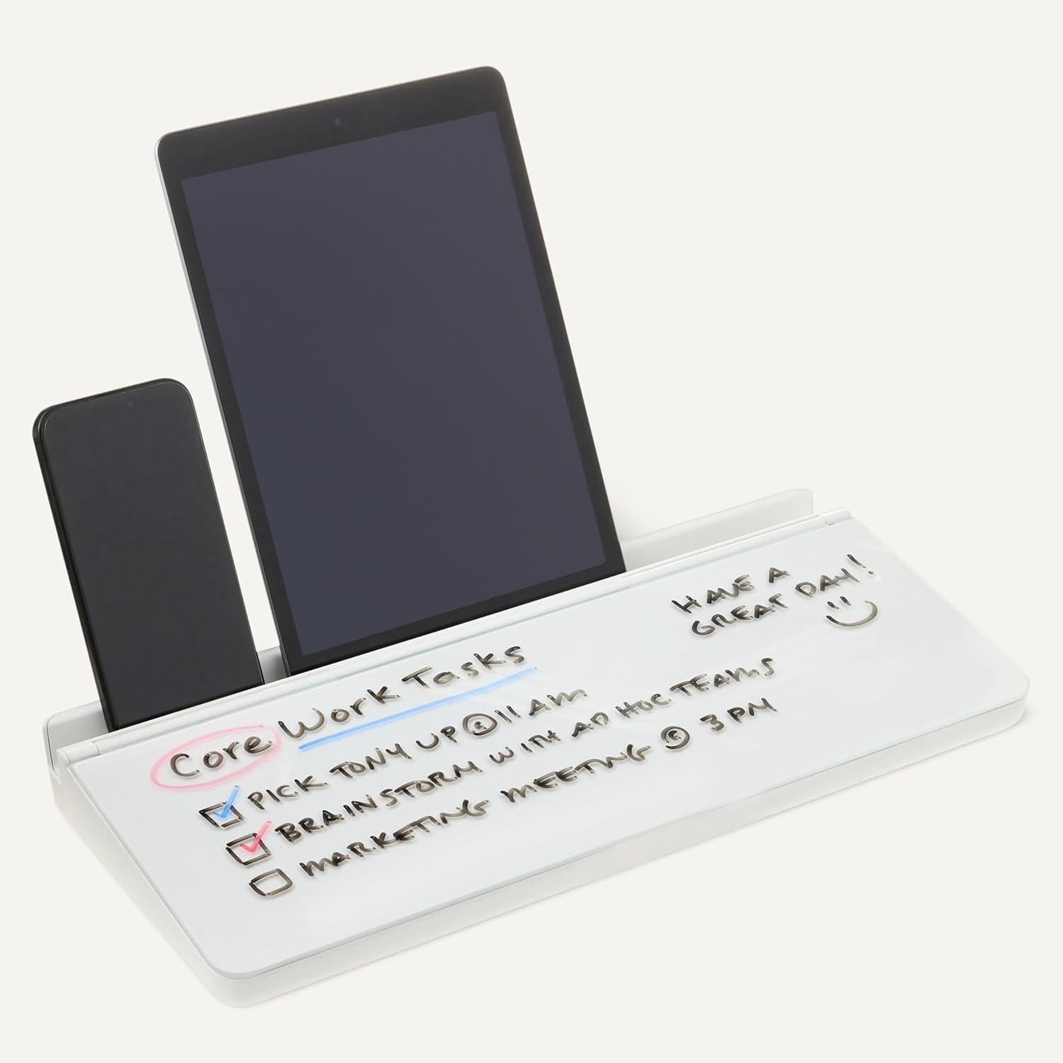 - Desktop dry erase whiteboard with organizer and accessories; ideal for office, home use.