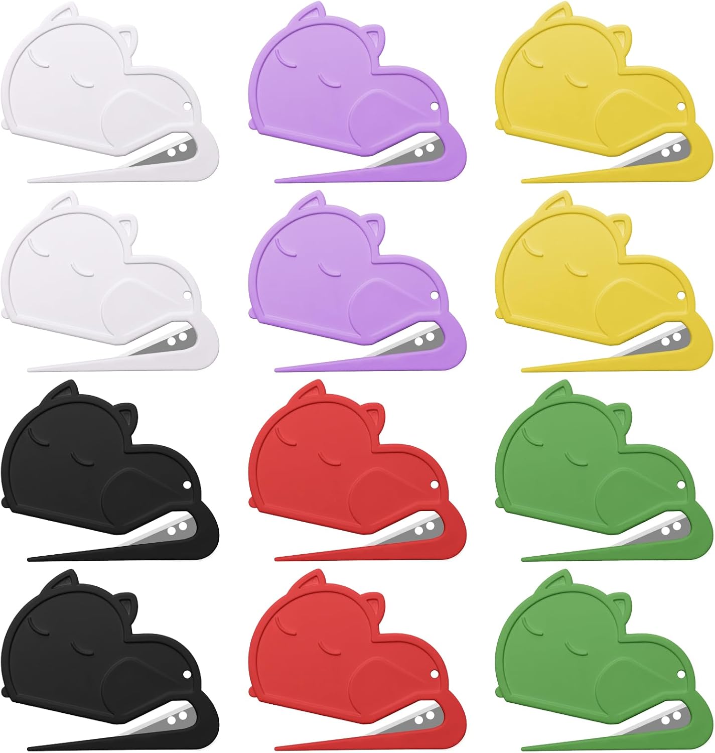 6 Pack Letter Opener Envelope Slitter Cat Shape, Luxiv Envelope Opener Slitter for Women, Men Mail Open Tool Mini Safe Letter Package Open Tool for Office, Home (12)