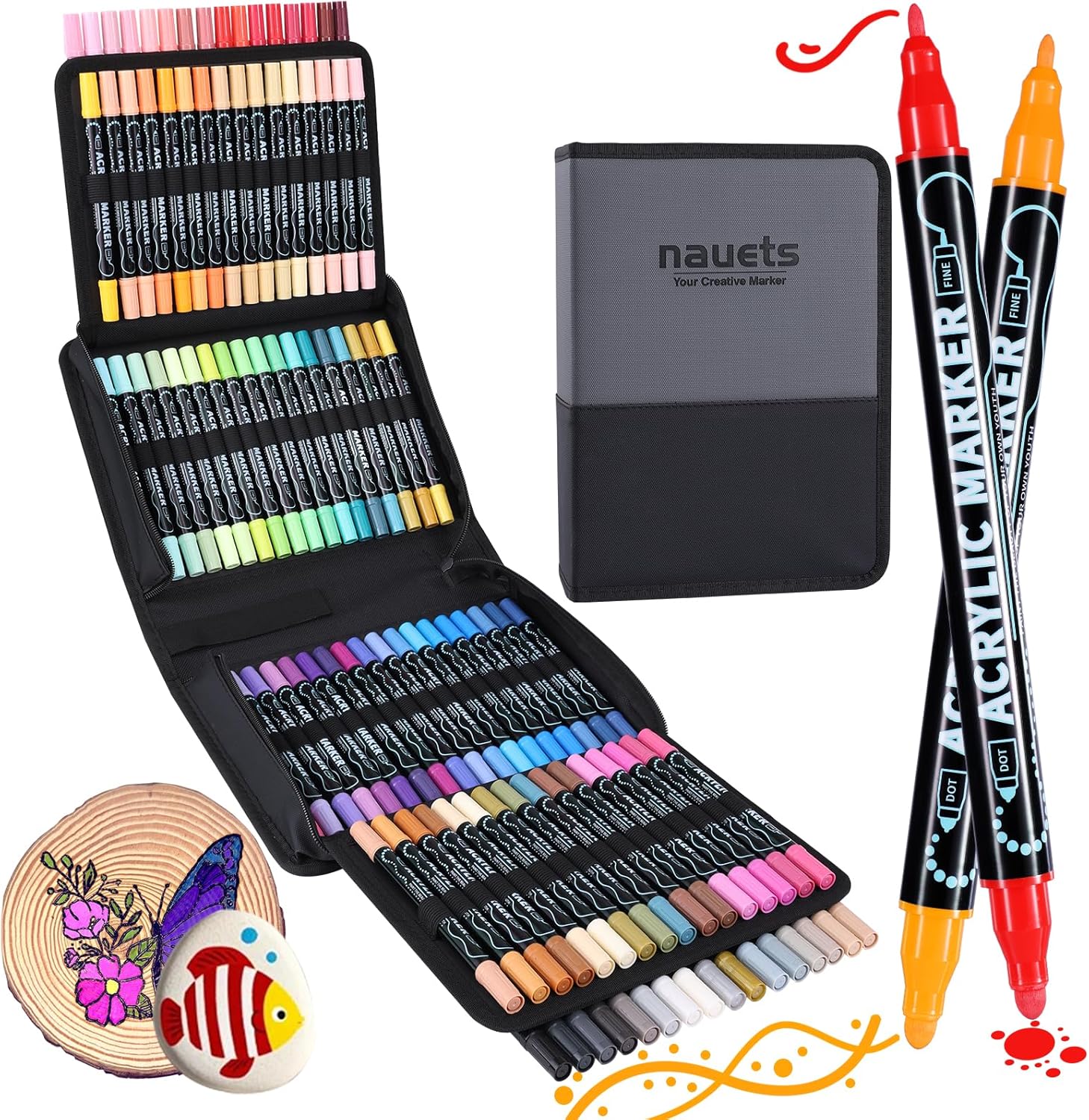 - High Quality Dual-Tip: Each acrylic paint marker features two wear-resistant fiber nibs to meet different coloring needs, eliminating the hassle of switching nibs and offering greater convenience for your creations. The 1-5mm round tip is ideal for painting large areas, while the 1mm fine tip is perfect for outlining and fine-line work. Whether you're a beginner or a professional, you can fully unleash your creativity!