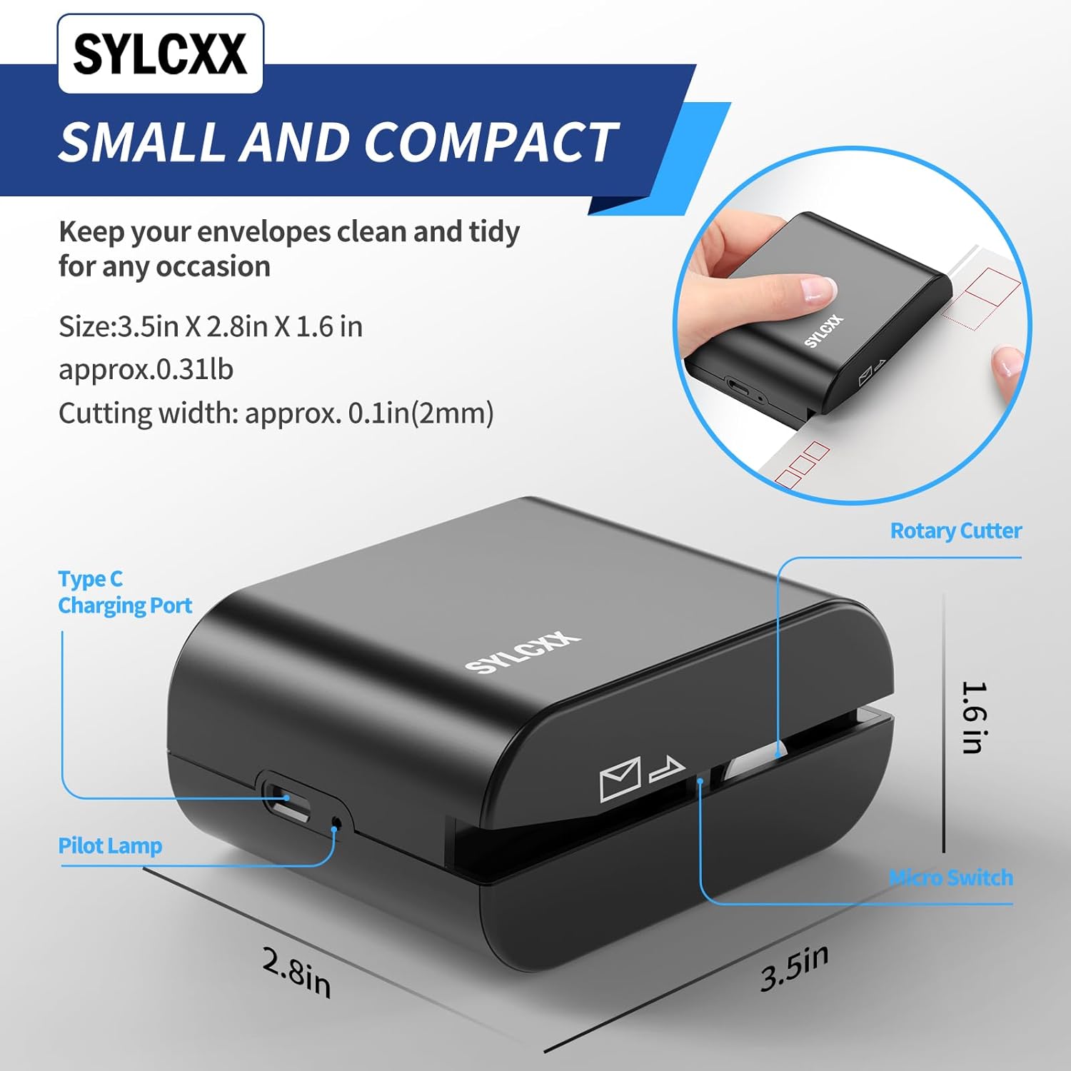 - COMPACT AND PORTABLE: The electric mail opener's sleek and lightweight design is easy to carry. Whether you are traveling or working from home, it is ideal for opening your mail.