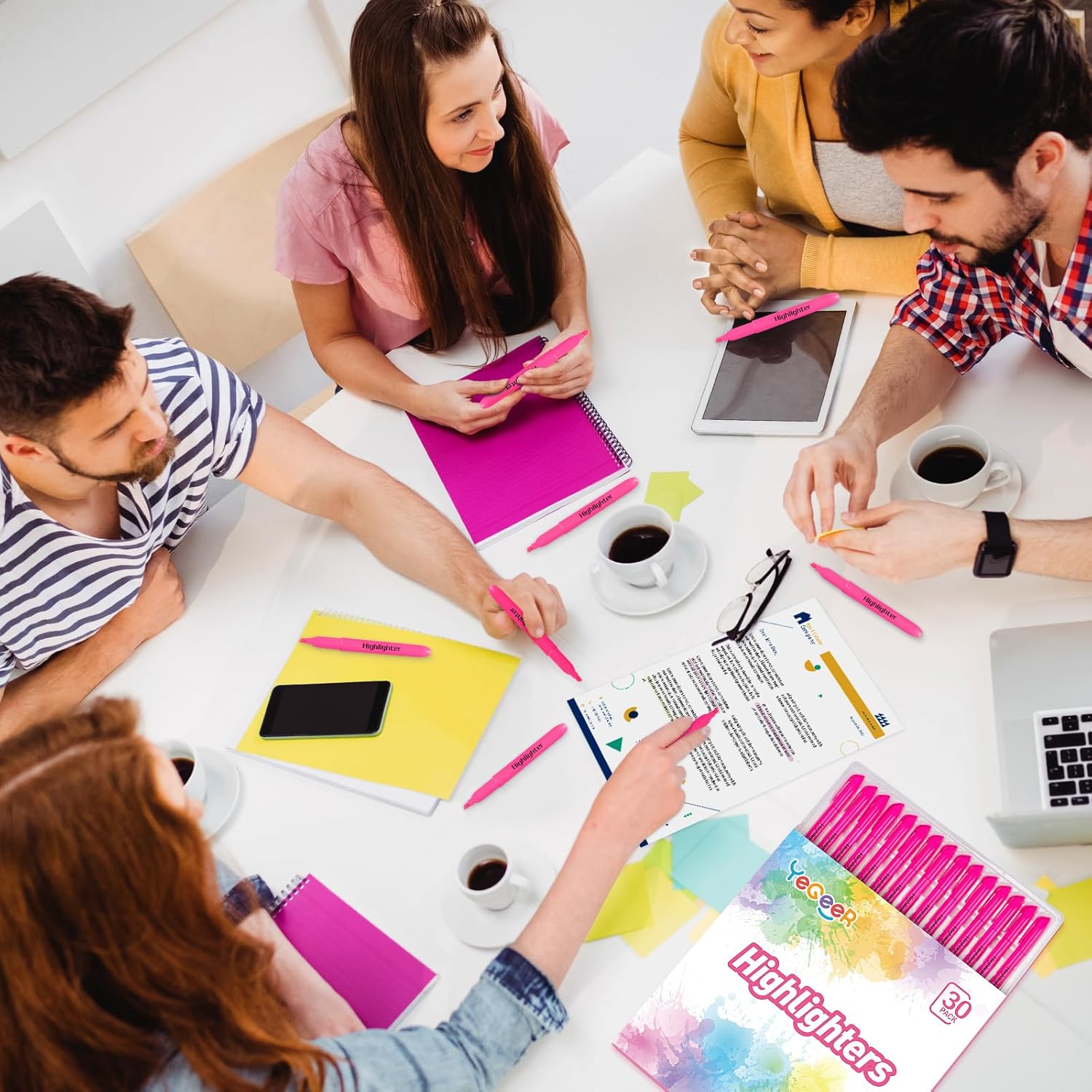 Highlighters Bulk - Quick-Dry No Bleed Markers for Office Classroom School Supplies Adults Kids Teachers Students (Pink, 30)