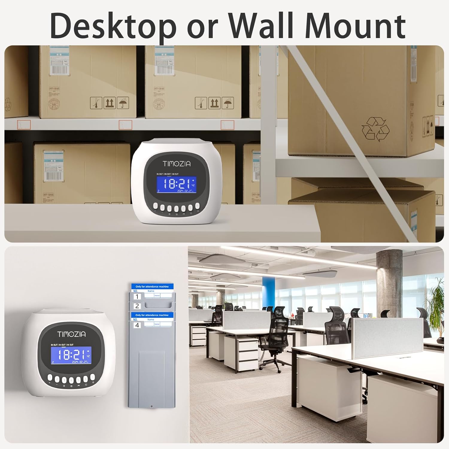 - ππππ-π€π¨ππππ§π¬ ππ¨πππ & πππ¦πππ‘π¦: Our Punch Card Attendance Machine is made of high-quality ABS material, ensures durable enough to survive any day-to-day use. The dimensions of this attendance machine are 22 cm in length, 12 cm in width, and 19 cm in height. Its compact and portable design allows for easy placement on a desk or wall mount for flexible installation. Save space while maintaining functionality.