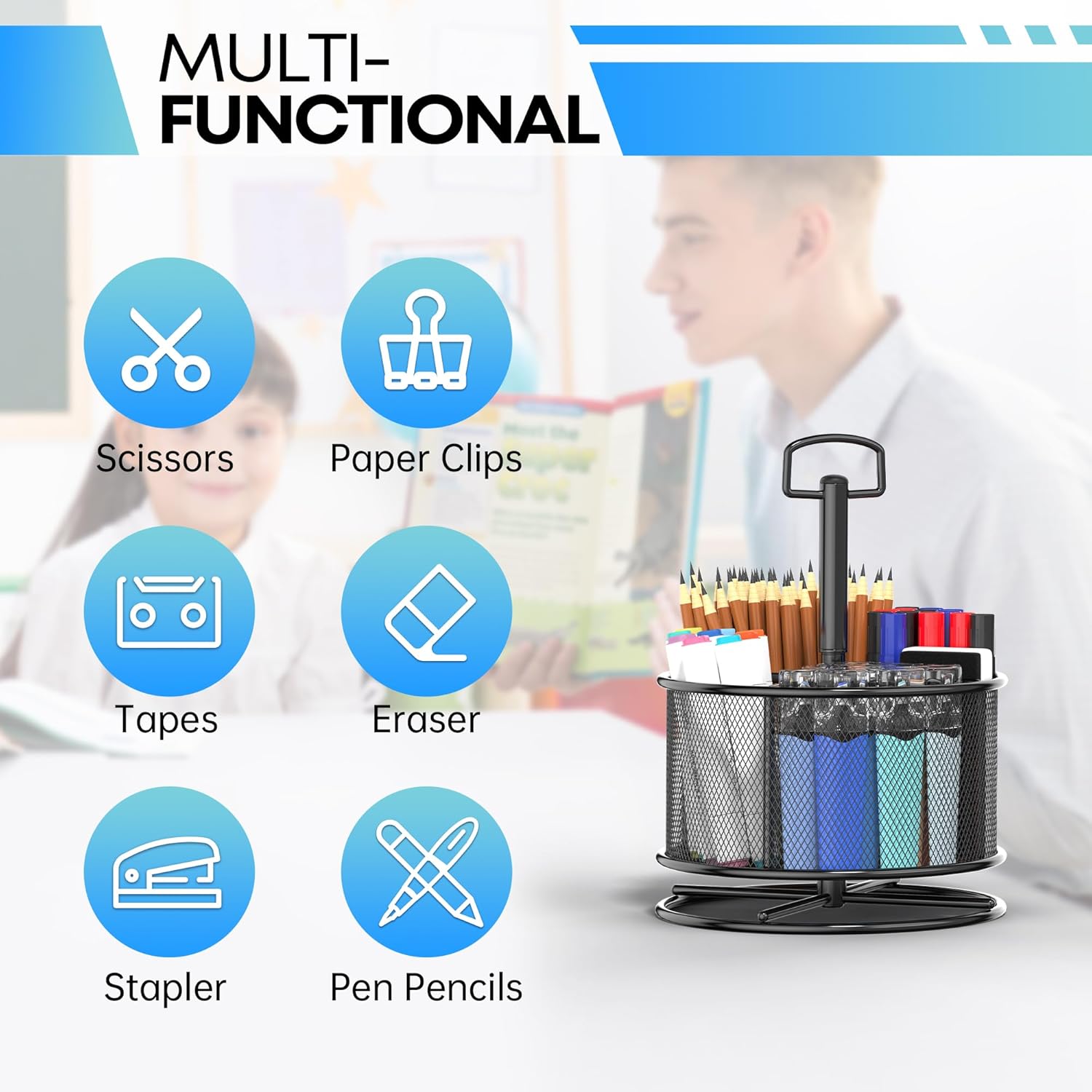 - ă360 Degree Rotating Designă:The pencil holder organizer that can be rotated 360 degrees features 4 storage spaces for storing a wide variety of office stationery. You can easily get the stationery you want by rotating it randomly