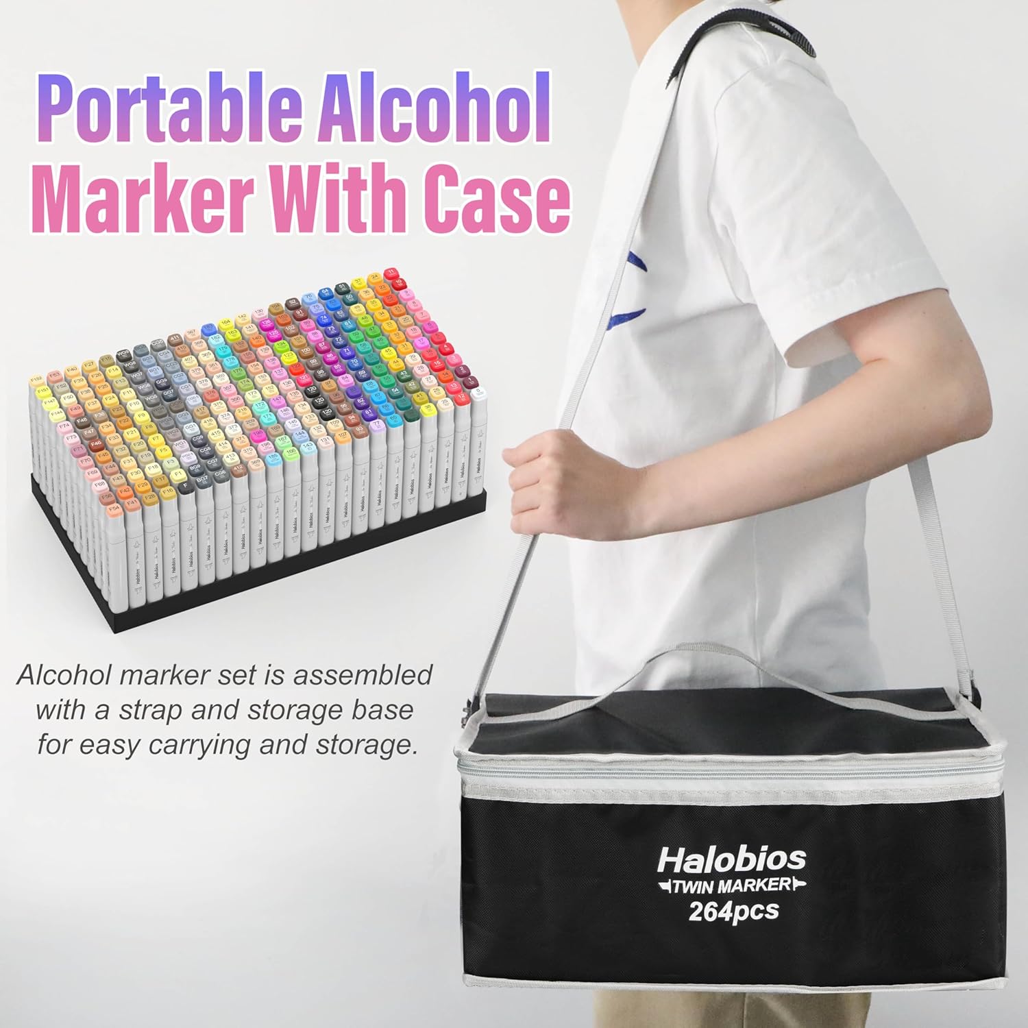 264 Alcohol Markers, Dual Tip Fine & Broad Drawing Markers Alcohol Marker Set with Case, Art Marker for Kids Adults Coloring Artists Drawing Sketching Card Making and Illustration