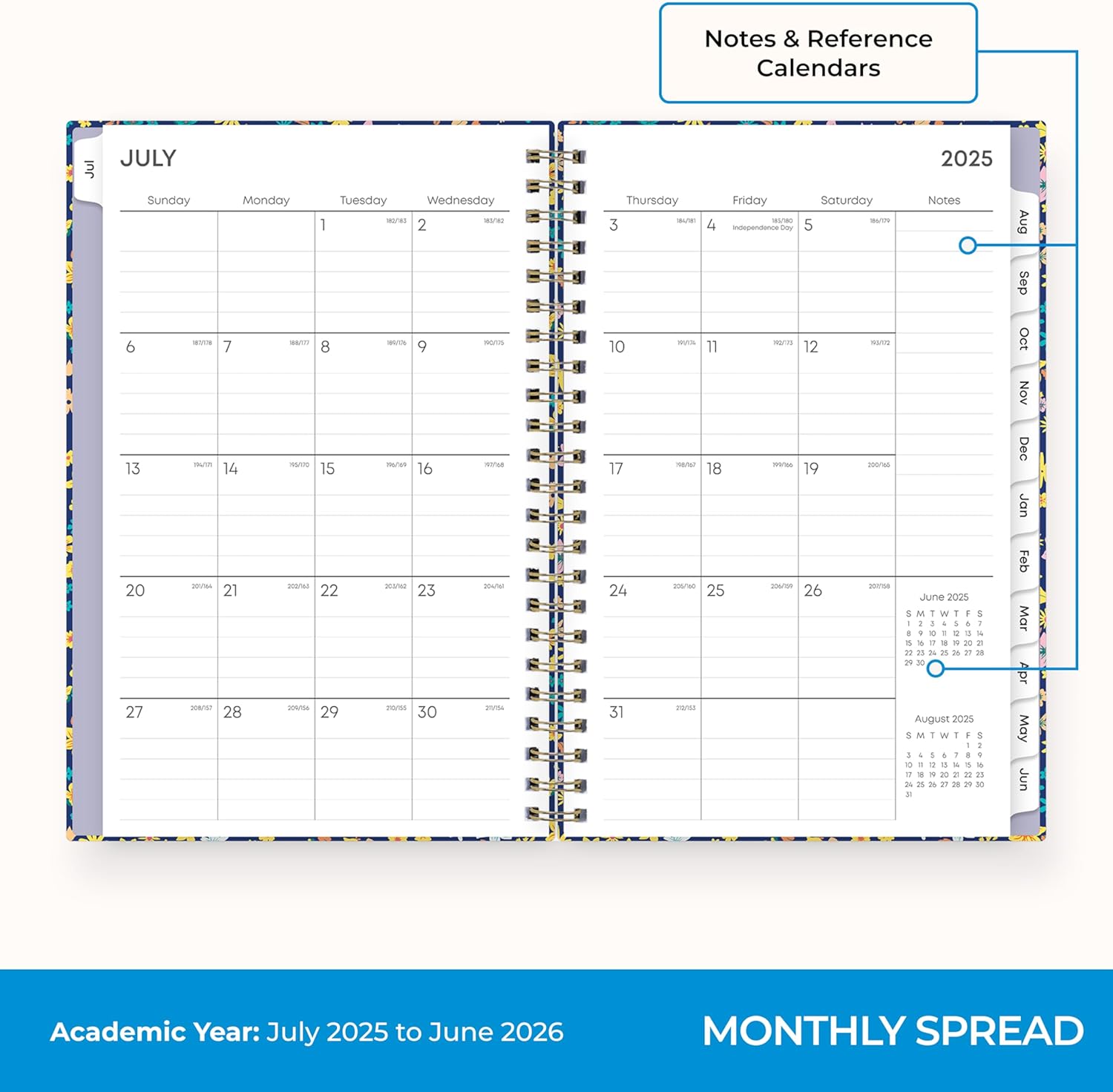 - [STAY ORGANIZED ALL YEAR] July 2025 - June 2026 day planner with 12 months of monthly and weekly pages for easy academic planning and scheduling; 2 additional monthly pages (May 2025 - June 2025) are included