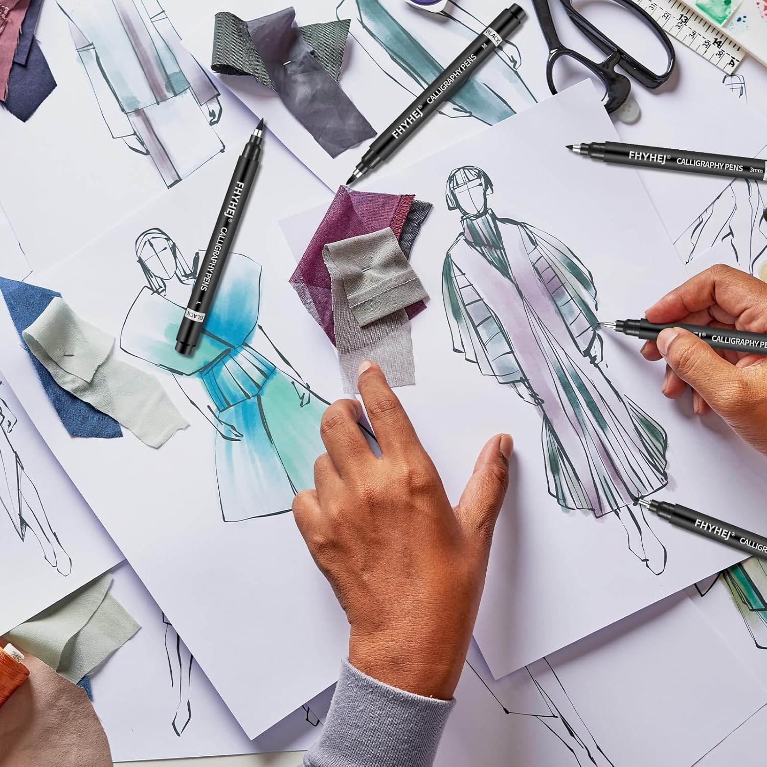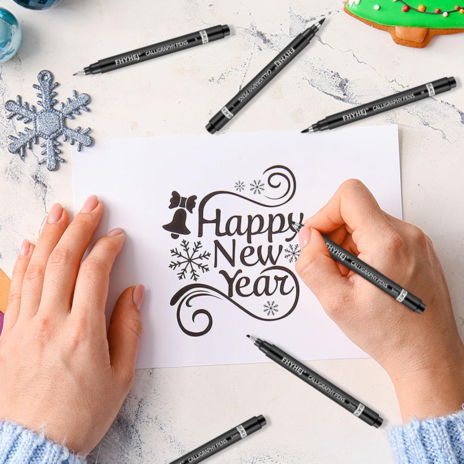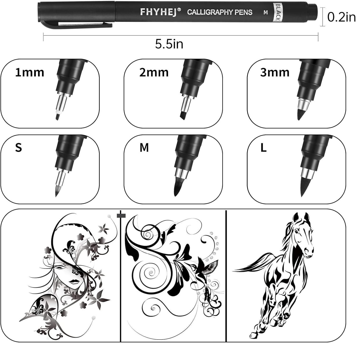 6-Size Calligraphy Pen Set for Writing, Drawing & Hand Lettering, Black Ink Brush Markers for Art, Calligraphy, and Sketching
