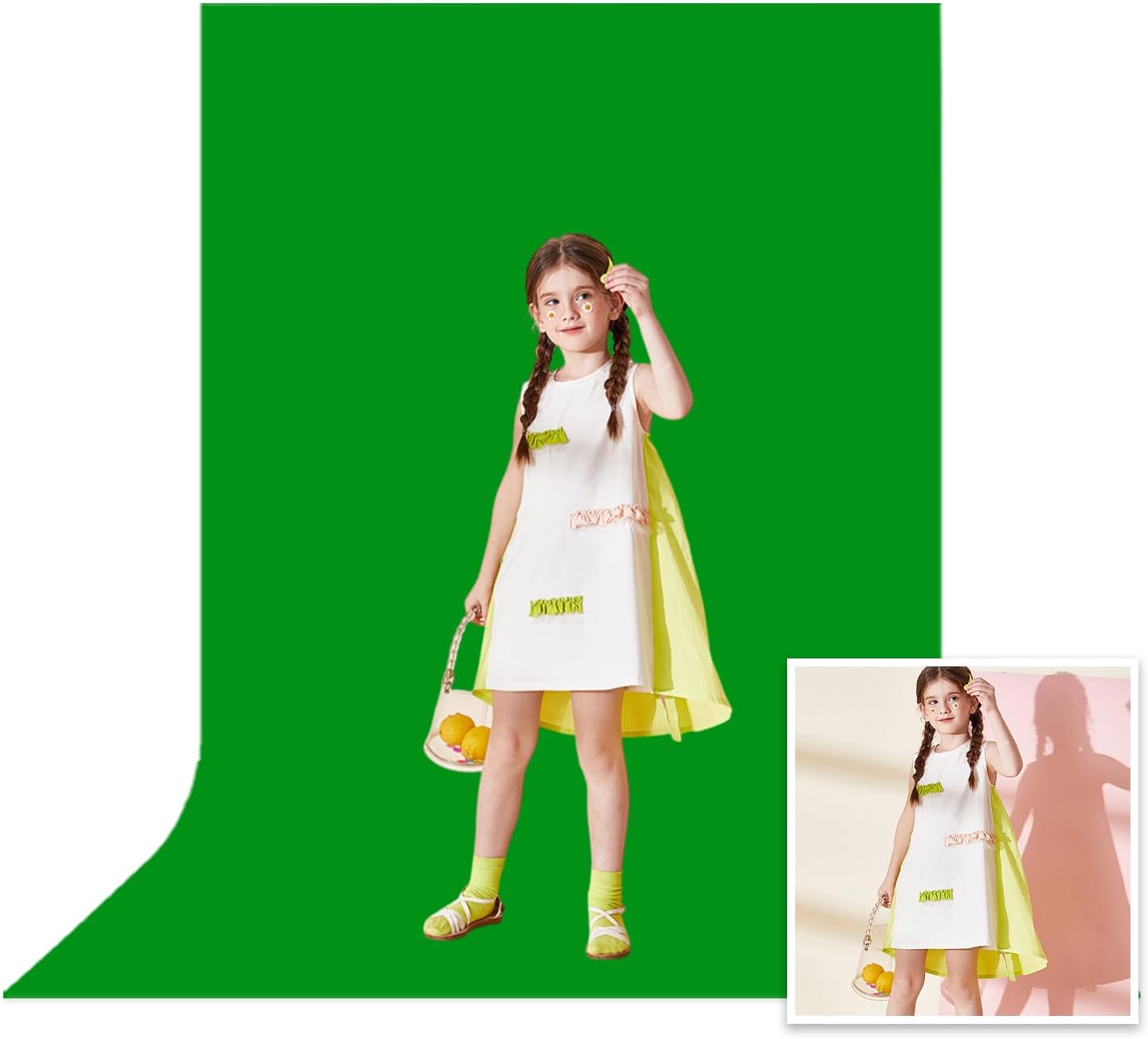 - PURE COLOR GREEN SCREEN - Ultimate chroma green surface, specially optimized to deliver unparalledled chroma keying results. It can be used on both sides, washable, ironable, foldable, durable, light weight, and good vertical feeling, easy to store and carry